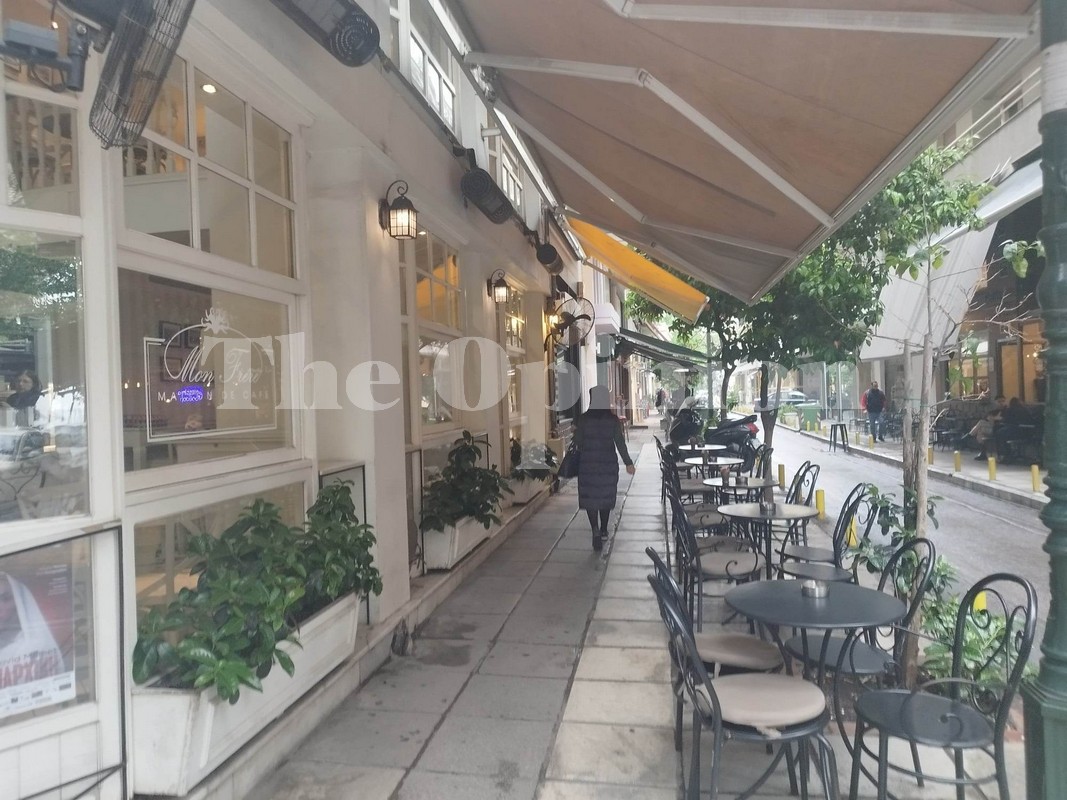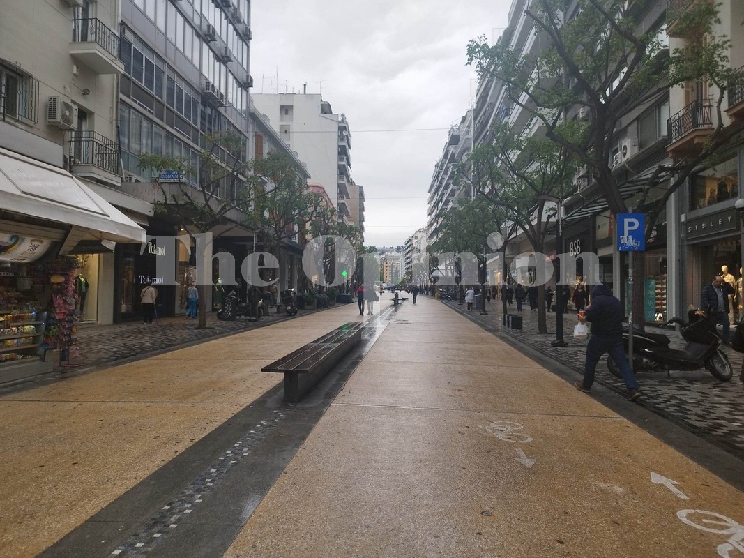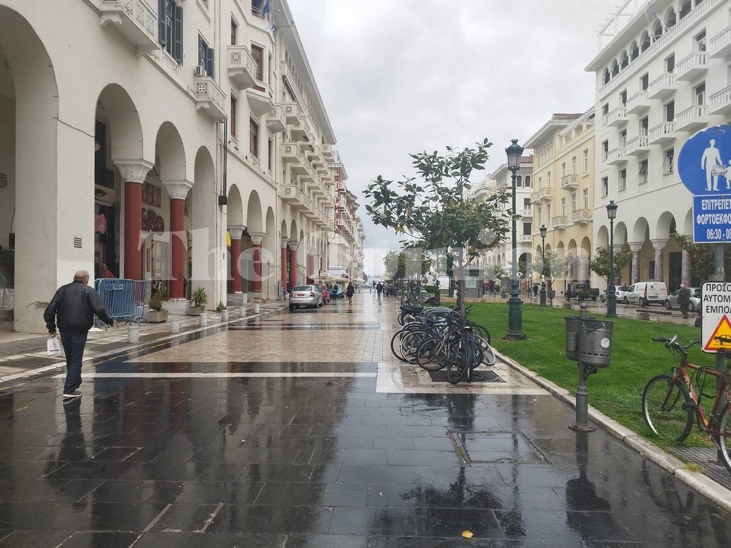 Στο ίδιο σκηνικό συμμετέχουν και οι καφετέριες του κέντρου, ακόμη και σε σημεία που σπάνια θα βρεις άδεια, με λίγες μόνο παρέες να έχουν διαλέξει να απολαύσουν τον καφέ τους στο μουντό και βροχερό τοπίο της πόλης.