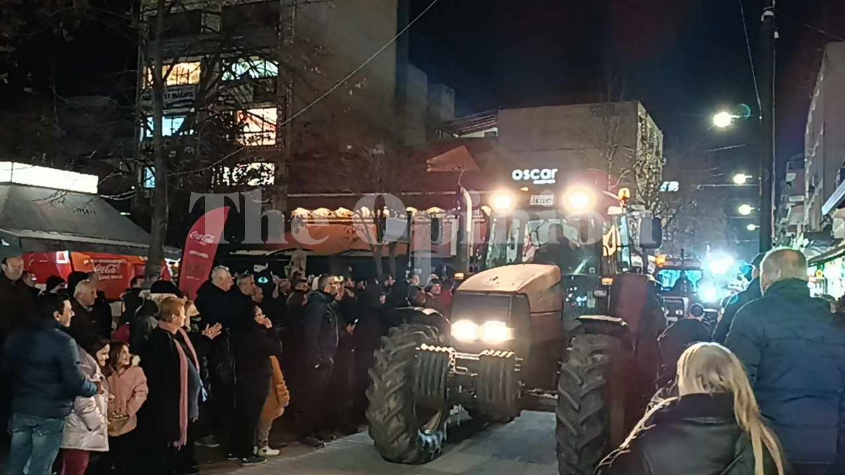 Συγκεκριμένα, οι αγρότες έχουν μπει στην πόλη και περνούν από την κεντρική πλατεία, όπου έχει συγκεντρωθεί κόσμος.