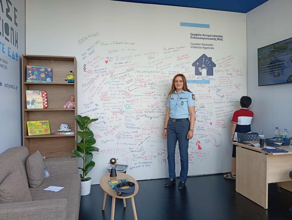 «Η Ελληνική Αστυνομία δίνει ιδιαίτερη βαρύτητα στην αντιμετώπιση των φαινομένων ενδοοικογενειακής βίας. Γι’ αυτόν τον λόγο η ίδρυση των γραφείων μας αποτελεί μια στοχευμένη και απολύτως αναγκαία δράση, που αποσκοπεί στην προστασία των θυμάτων, στην αναζήτηση και σύλληψη των δραστών, αλλά και στην αποτροπή της επανάληψης φαινομένων ενδοοικογενειακής βίας», αναφέρει Αστυνόμος Α’ Τριανταφυλλιά Σαφραλιώτη, επικεφαλής Επιχειρησιακού Γραφείου Αντιμετώπισης Ενδοοικογενειακής Βίας Α.Τ Αμπελοκήπων Μενεμένης.