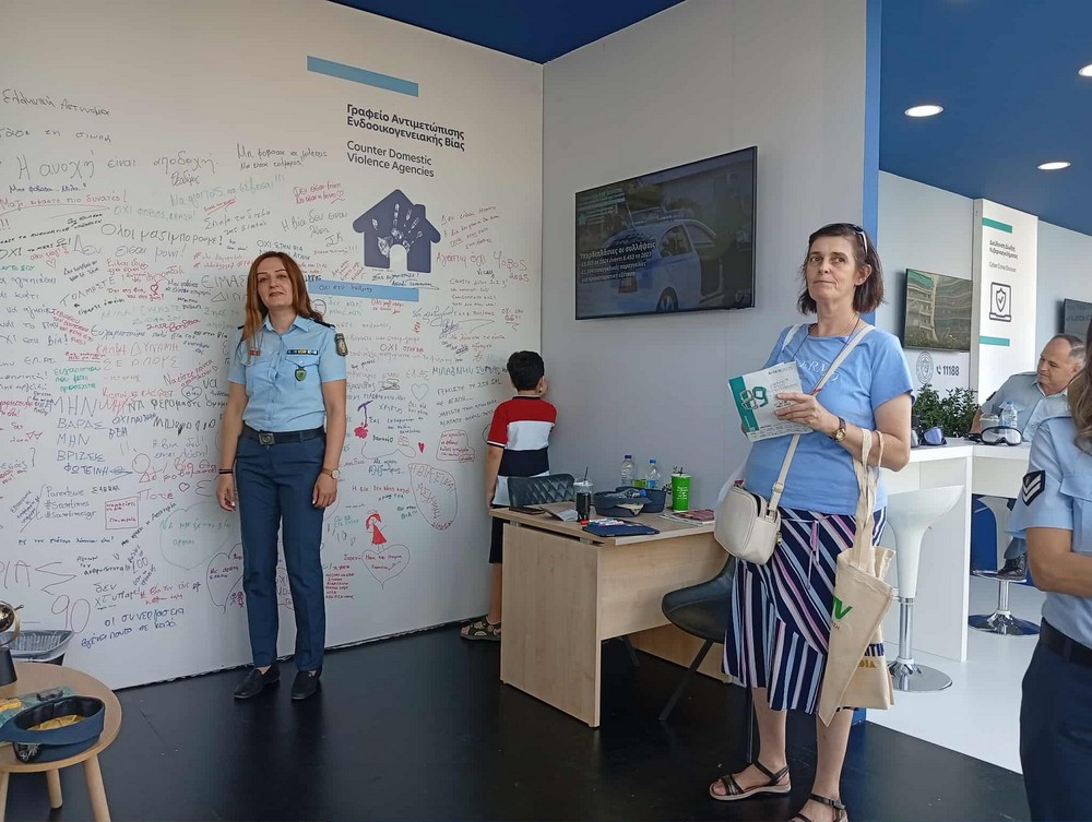 Στο περίπτερο της Ελληνικής Αστυνομίας στη ΔΕΘ, οι πολίτες σταματούν, ενημερώνονται και συζητούν. Το θέμα της ενδοοικογενειακής βίας αγγίζει όλο και περισσότερους, αφού –όπως παραδέχονται οι ίδιοι οι αστυνομικοί– «είναι κάτι που μπορεί να συμβεί στον διπλανό μας ή ακόμη και στο δικό μας σπίτι».