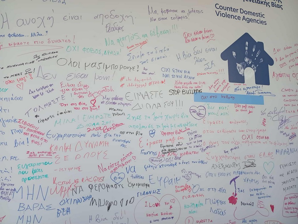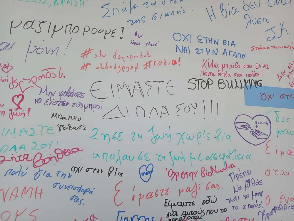 «Είμαστε δίπλα σου», «όχι στη βία, ναι στην αγάπη», «καμία μόνη», αυτά είναι μερικά μόνο από τα μηνύματα που άφησαν επισκέπτες στο περίπτερο της Ελληνικής Αστυνομίας, στο τμήμα Ενδοοικογενειακής Βίας στη φετινή ΔΕΘ.