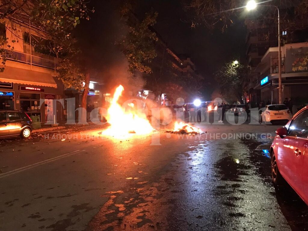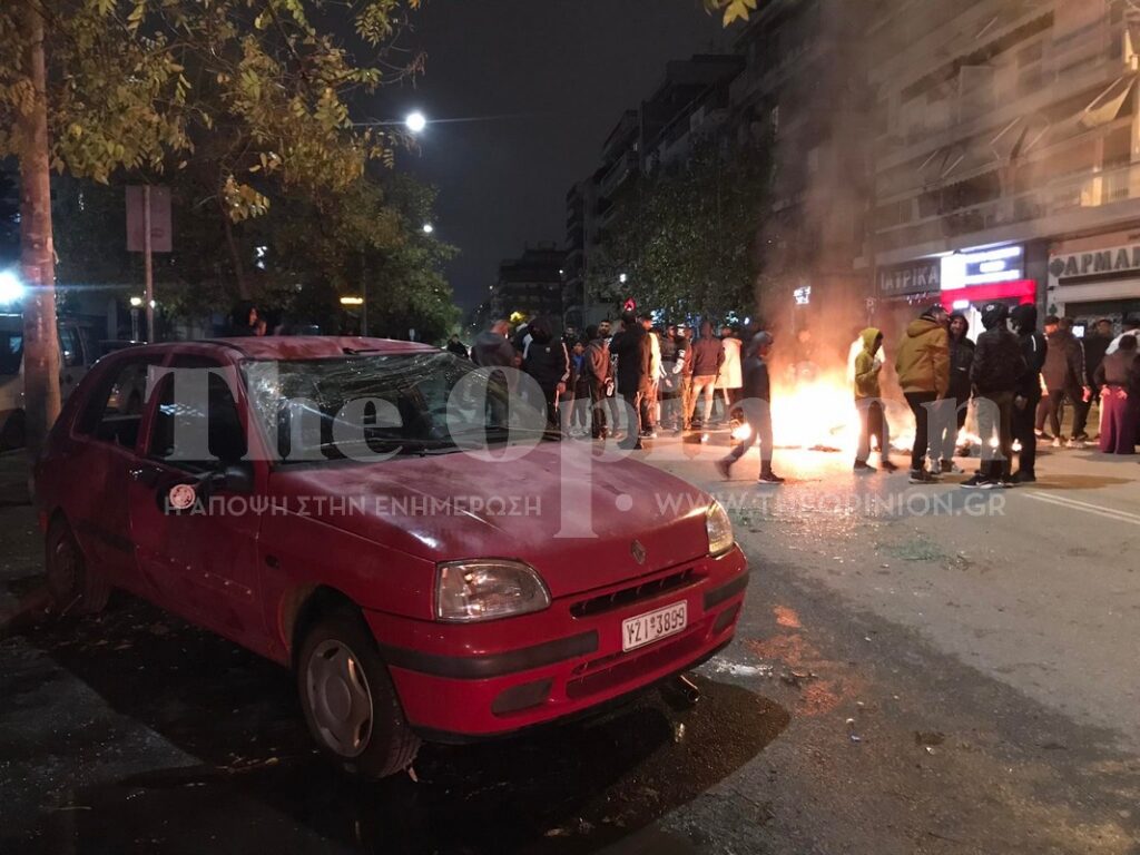 Ρομά και αντιεξουσιαστές έχουν βάλει φωτιά σε κάδους ενώ αναποδογύρισαν ένα ΙΧ και το καταστρέφουν.
