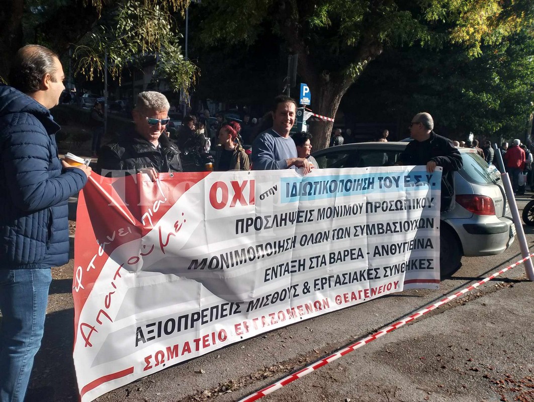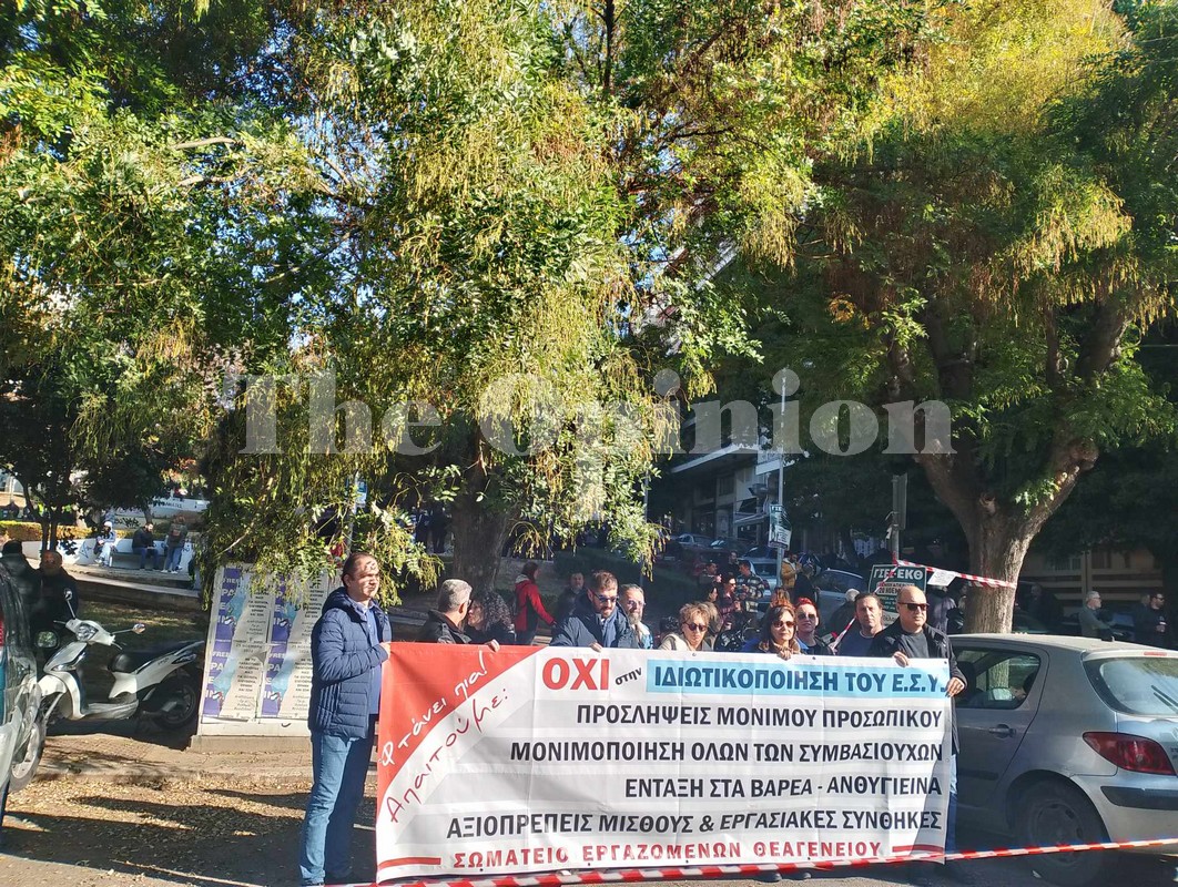 Στην απεργιακή κινητοποίηση συμμετέχουν γιατροί και νοσηλευτές, ζητώντας προσλήψεις μόνιμου προσωπικού και επαρκή χρηματοδότηση του Εθνικού Συστήματος Υγείας.