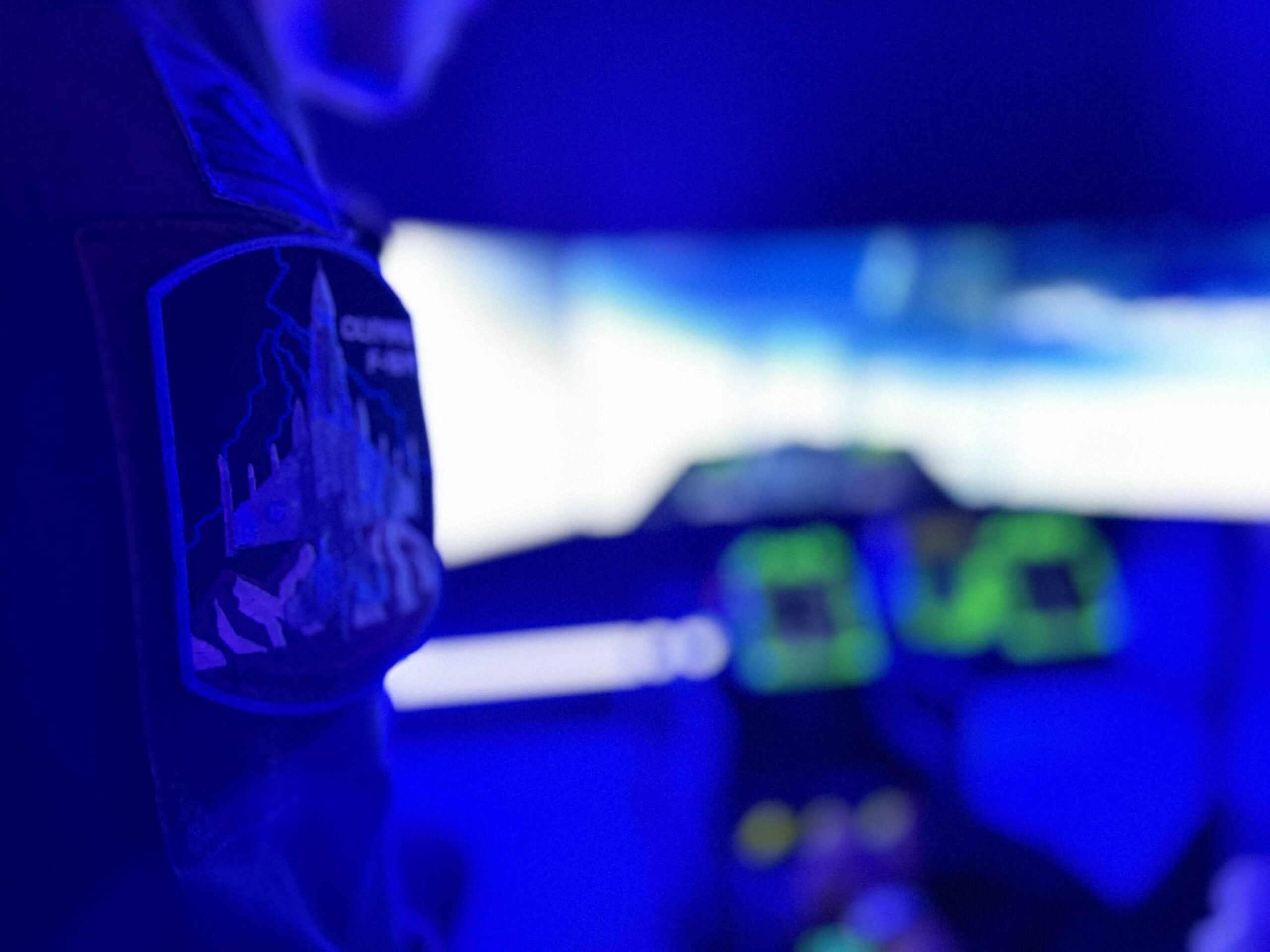 Η καμπίνα είναι στενή, γεμάτη φωτεινές ενδείξεις, μοχλούς και οθόνες που τρεμοπαίζουν.