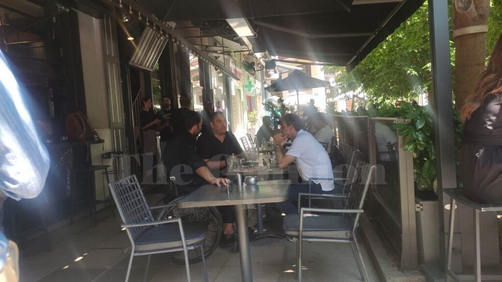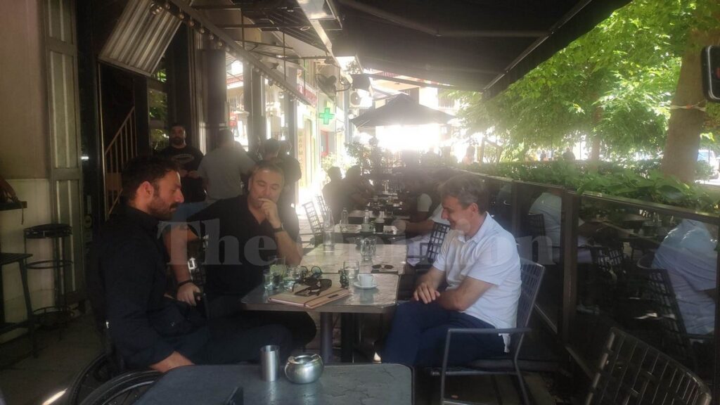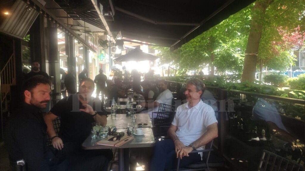 Ο κ. Μητσοτάκης απολαμβάνει τον καφέ του σε πολύ γνωστό καφέ του κέντρου της Θεσσαλονίκης. Μάλιστα, μαζί του είναι και ο γνωστός τραγουδιστής, Αντώνης Ρέμος αλλά και ο Παραολυμπιονίκης της κολύμβησης, Αντώνης Τσαπατάκης.