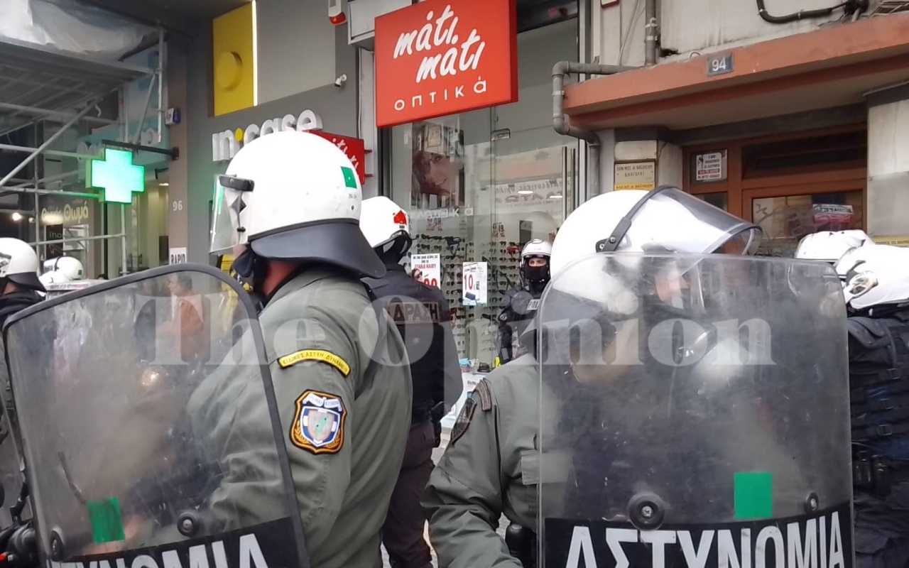 Μερίδα ατόμων όταν έφτασαν στην οδό Αγίου Δημητρίου και μπροστά από τον Ιερό Ναό πέταξαν πέτρες, μολότοφ και αντικείμενα προς τις αστυνομικές δυνάμεις των ΜΑΤ.