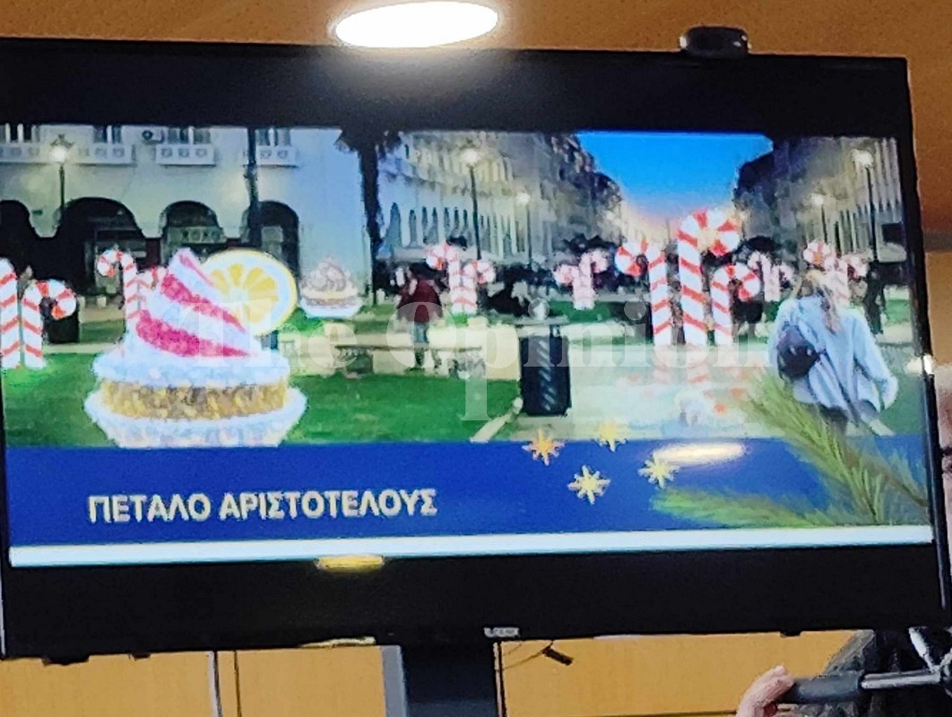Πιο… γλυκιά διάθεση στο πέταλο της πλατείας Αριστοτέλους, με τα κλασικά άσπρα – κόκκινα γλειφιτζούρια ή αλλιώς candy cane, αλλά και μεγάλων – φωτεινών cupcakes.