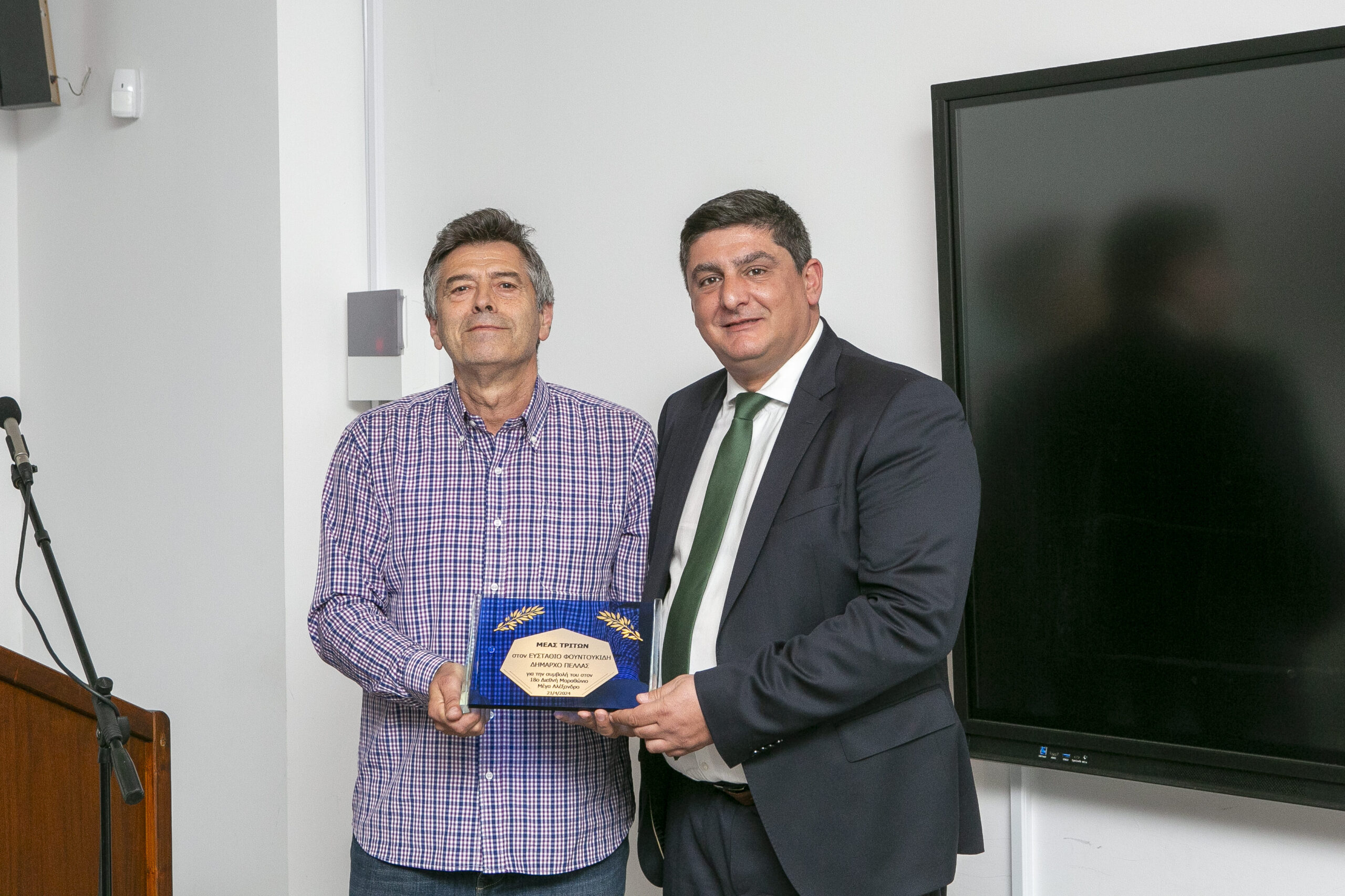 Βραβεύτηκε ο δήμαρχος Πέλλας από τους υπευθύνους της οργανωτικής επιτροπής του μαραθωνίου, Στέλιο Καραογλανίδη και Μιχάλη Μελισσίδη.