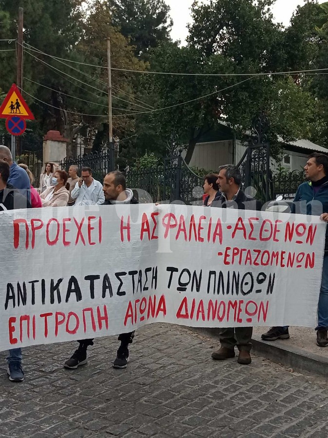 Αυτή τη φορά, βγήκαν και πάλι να διαμαρτυρηθούν τα μέλη του Συλλόγου Εργαζομένων στο νοσοκομείο και διανομείς.