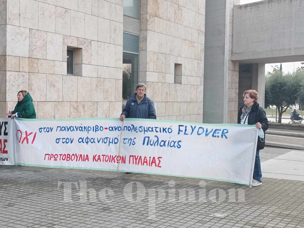 Συγκέντρωση διαμαρτυρίας ενάντια στην κατασκευή του FlyOver έξω από το δημαρχιακό μέγαρο της Θεσσαλονίκης.