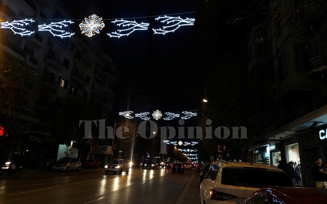 Η οδός Εγνατία, με το δικό της στιλ, βάζει στο εορταστικό κλίμα πεζούς και οδηγούς, με τα εντυπωσιακά εναέρια στολίδια της στο μεγαλύτερο μέρος της.