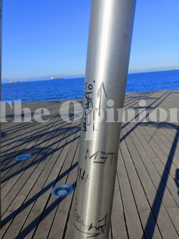 Φθορές παρουσιάζουν οι εμβληματικές Ομπρέλες του Ζογγολόπουλου στη Νέα Παραλία Θεσσαλονίκης, που αποδεικνύονται μάλιστα… ιδανικές για κάθε είδους διαφημιστικά αυτοκόλλητα!