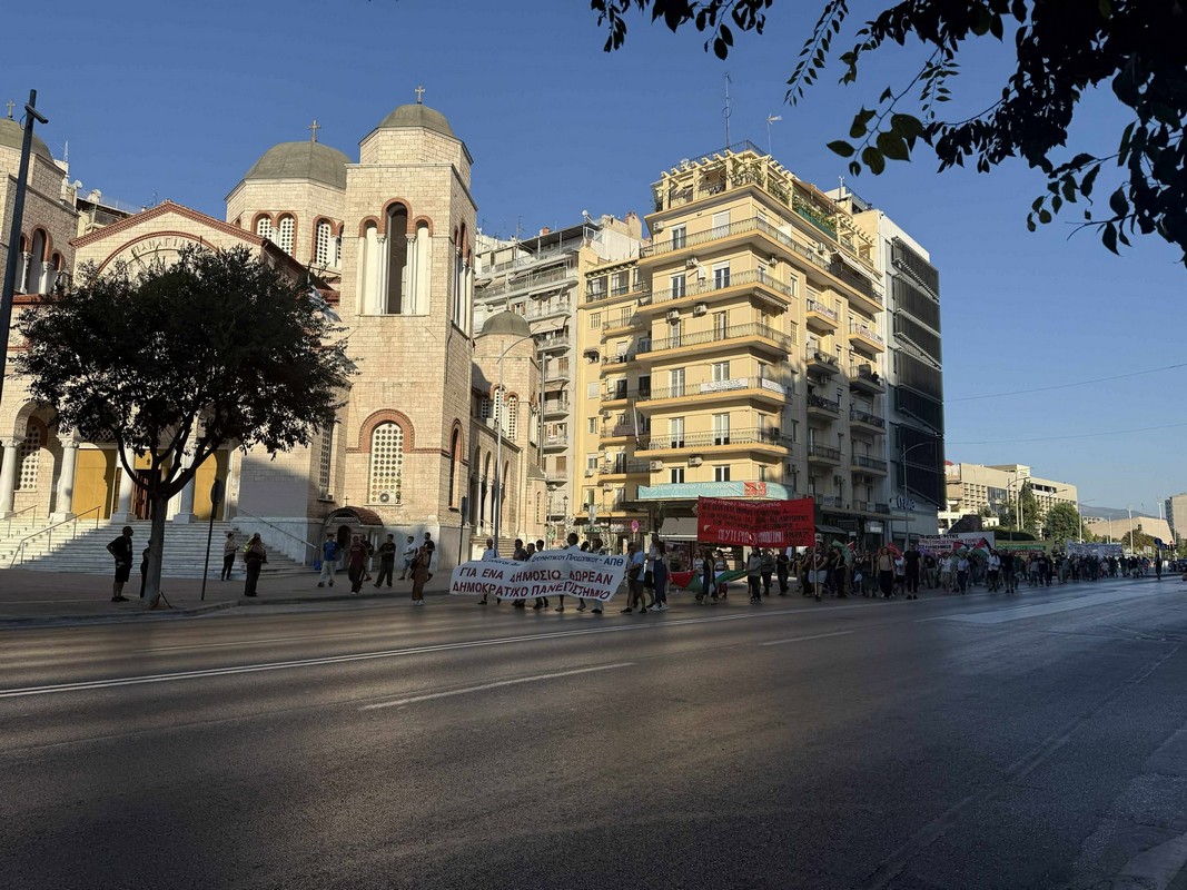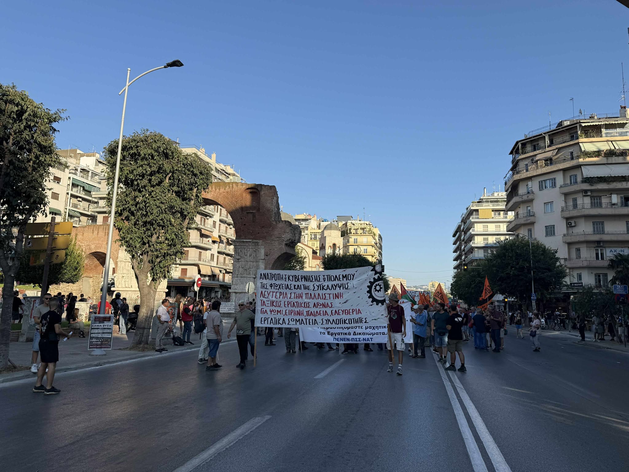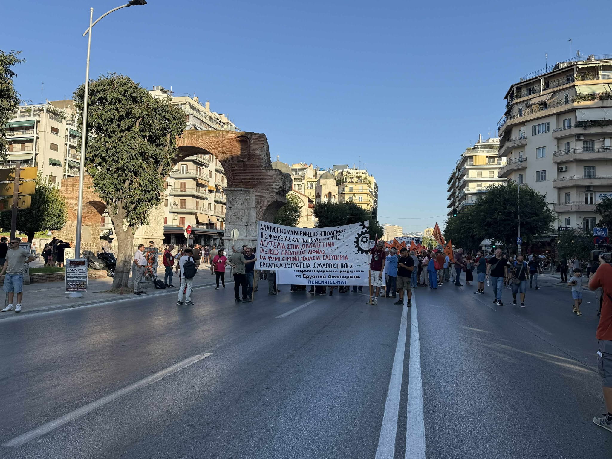 Η κινητοποίηση ξεκινάει από την πλατεία Καμάρας, όπου είχε προηγηθεί συγκέντρωση με έντονη παρουσία πανό, συνθημάτων και τυμπάνων, δίνοντας τον παλμό της συμμετοχής ενόψει της 89ης Διεθνούς Έκθεσης Θεσσαλονίκης. Η πορεία συγκεντρώνει περισσότερα από χίλια άτομα, με τους διαδηλωτές να κινούνται σε κεντρικούς δρόμους υπό διακριτική παρακολούθηση ισχυρών αστυνομικών δυνάμεων που είχαν αναπτυχθεί περιμετρικά του δρομολογίου.