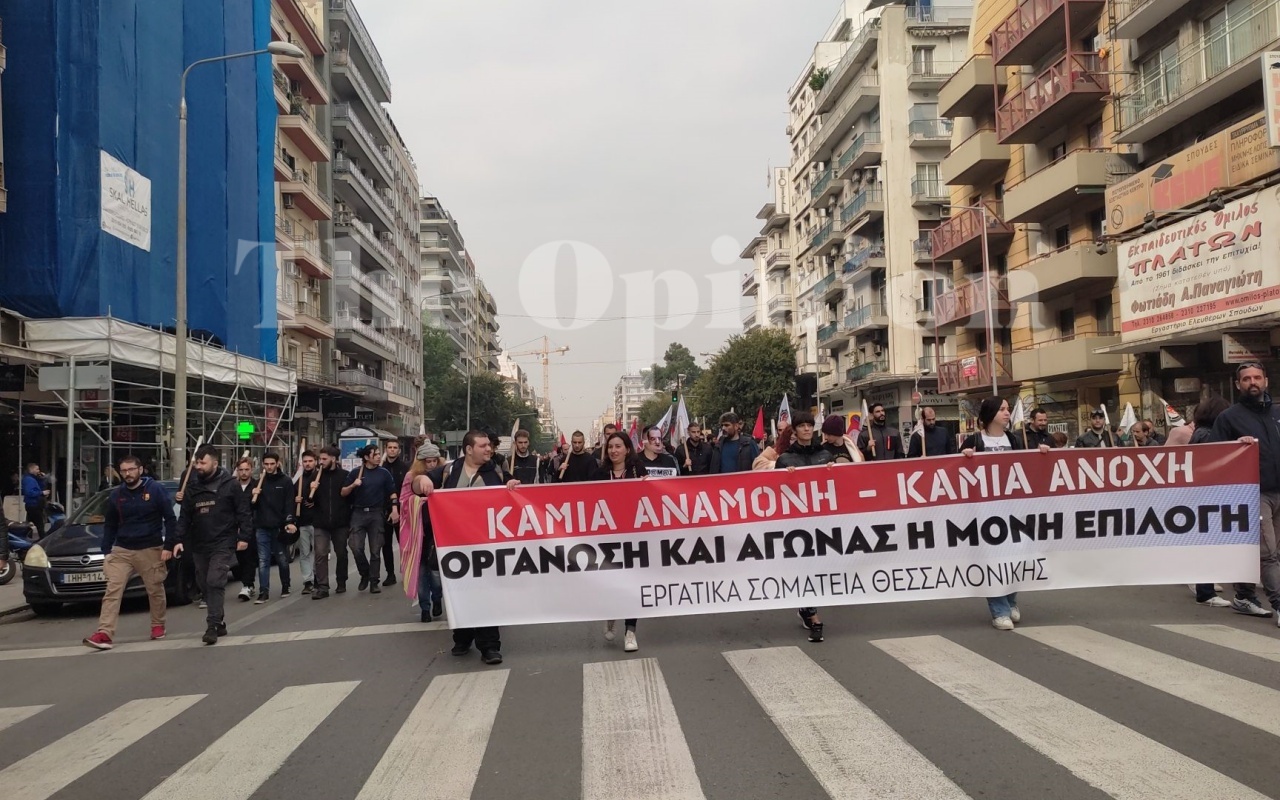 Αυτή την ώρα η πορεία κινείται επί της οδού Αγίας Σοφίας, θα περάσει τη Μακένζυ Κινγκ, την Παύλου Μελά και μετά την Τσιμισκή.