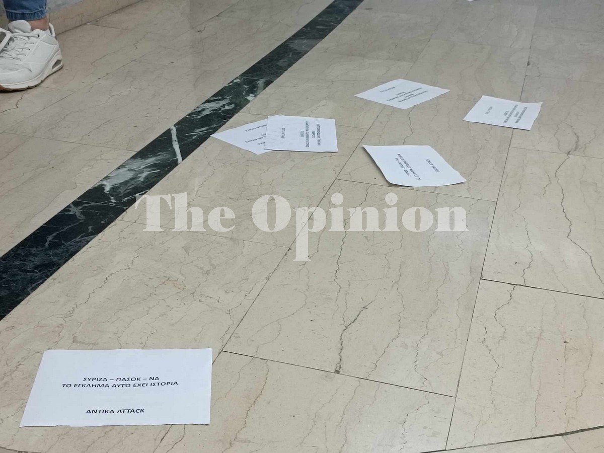 Φοιτητές της παράταξης “ΑΝΤΙΚΑ attack” πέταξαν flyer με συνθήματα και ανήρτησαν πανό έξω από το χώρο που θα μιλήσει ο Αλέξης Τσίπρας στη Θεσσαλονίκη.