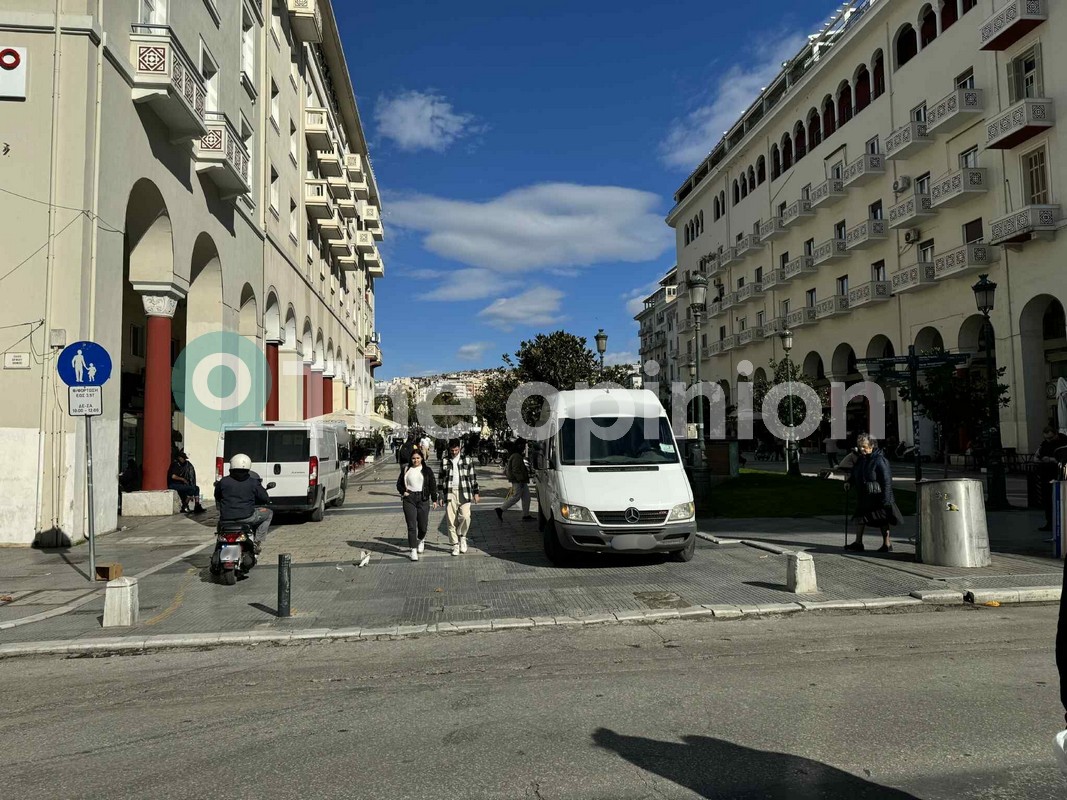 Όπως αναφέρει, το μεσημέρι της Τρίτης η περιοχή θύμιζε… πάρκινγκ φορτηγών, καθώς αρκετά οχήματα πραγματοποιούσαν φορτοεκφορτώσεις μέσα στην «καρδιά» της πόλης. Ο ίδιος επισημαίνει ότι, παρότι οι εργασίες μπορεί να γίνονται εντός του επιτρεπόμενου ωραρίου, η εικόνα που παρουσιάζει η πλατεία, ένα από τα πιο εμβληματικά σημεία της Θεσσαλονίκης μετά τον Λευκό Πύργο, δεν συνάδει με το τουριστικό της προφίλ.