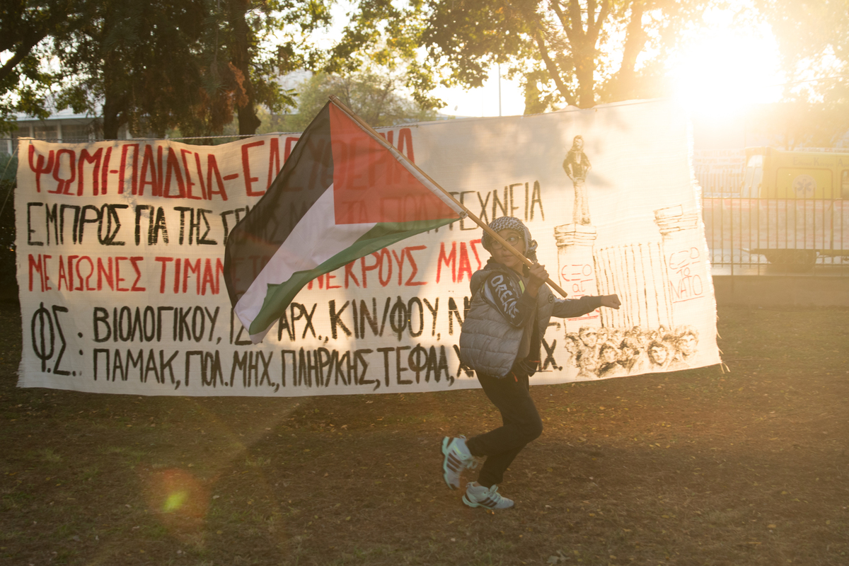 «Ψωμί – Παιδεία – Ελευθερία» φώναζαν οι Παλαιστίνιοι αδελφωμένοι με τον ελληνικό λαό. «Λε- Λε – Λευτεριά, Λευτεριά στην Παλαιστίνη» φώναζαν από το πρώτο μπλοκ μέχρι το τελευταίο αδελφωμένοι με τους Παλαιστίνιους. Το Πολυτεχνείο δεν θα υπήρχε αν ο λαός δεν ήταν ενωμένος. Αν οι εργάτες, οι αγρότες, οι απλοί πολίτες δεν συντάσσονταν με τους φοιτητές που ήταν αποφασισμένοι.
