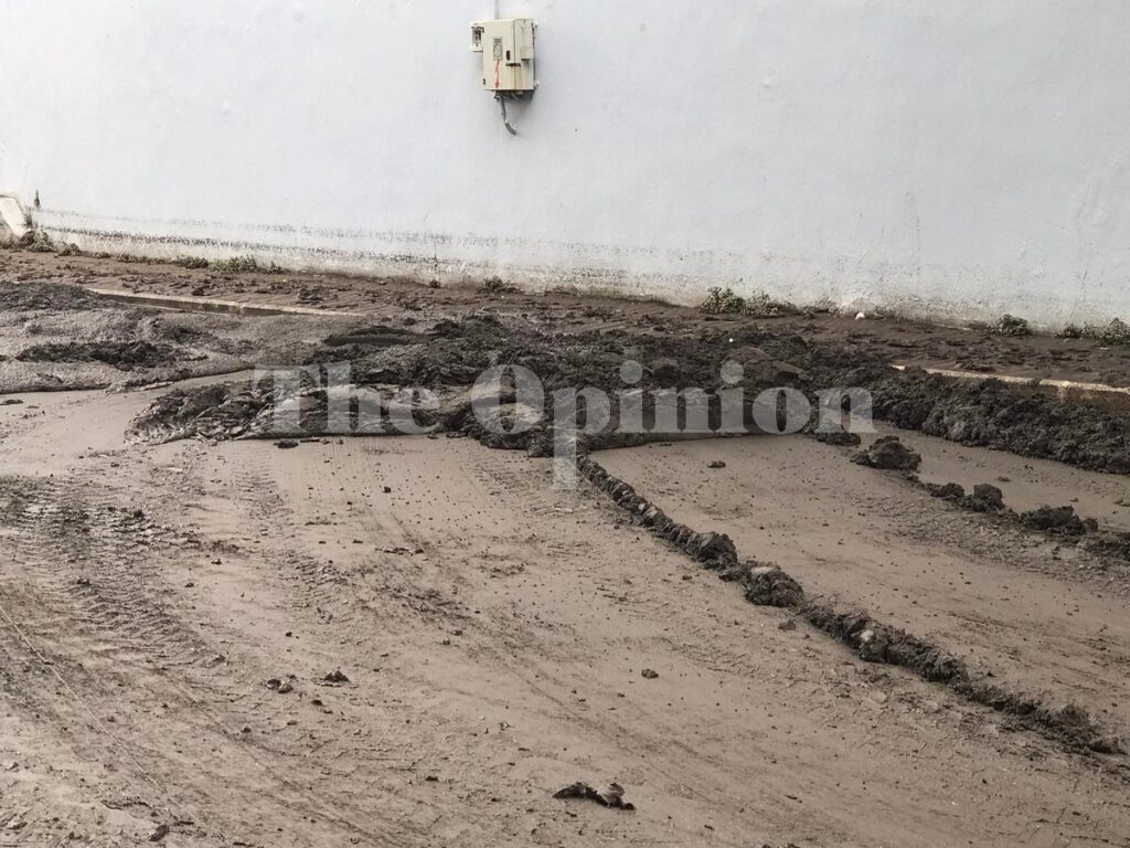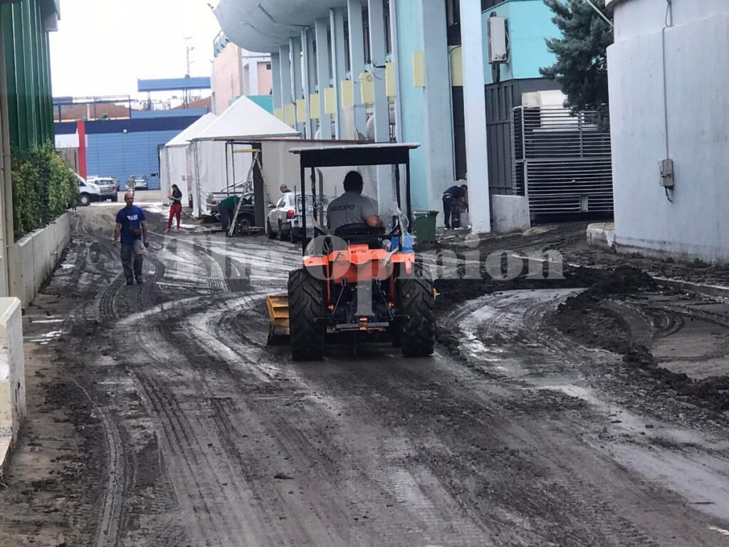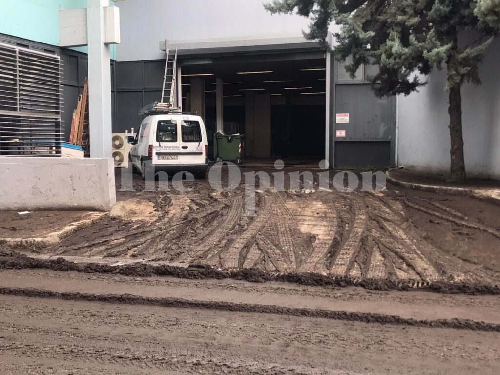 Βούρκο θυμίζει ο δρόμος μπροστά από το περίπτερο με τα μηχανήματα έργων μέχρι και αυτή την ώρα να απομακρύνουν τις λάσπες.
