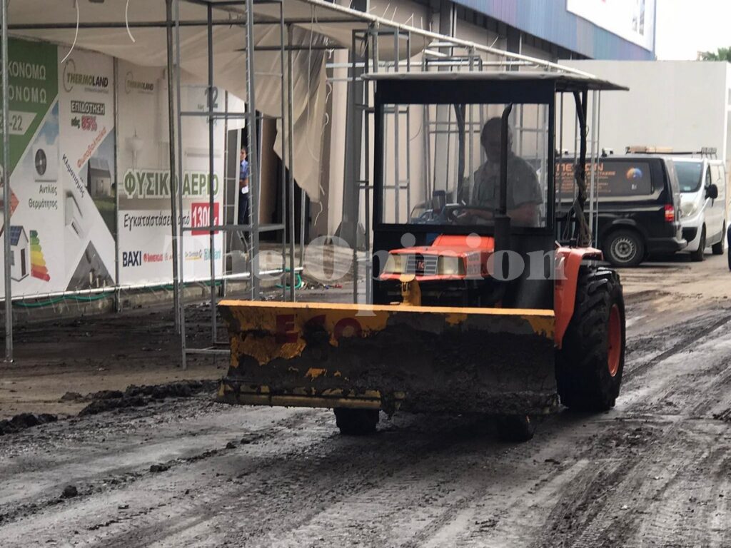 Περίπτερο της ΔΕΘ έγινε «λίμνη» μια εβδομάδα πριν τα εγκαίνια-Μαζεύουν τις λάσπες με φορτωτή (ΦΩΤΟ)