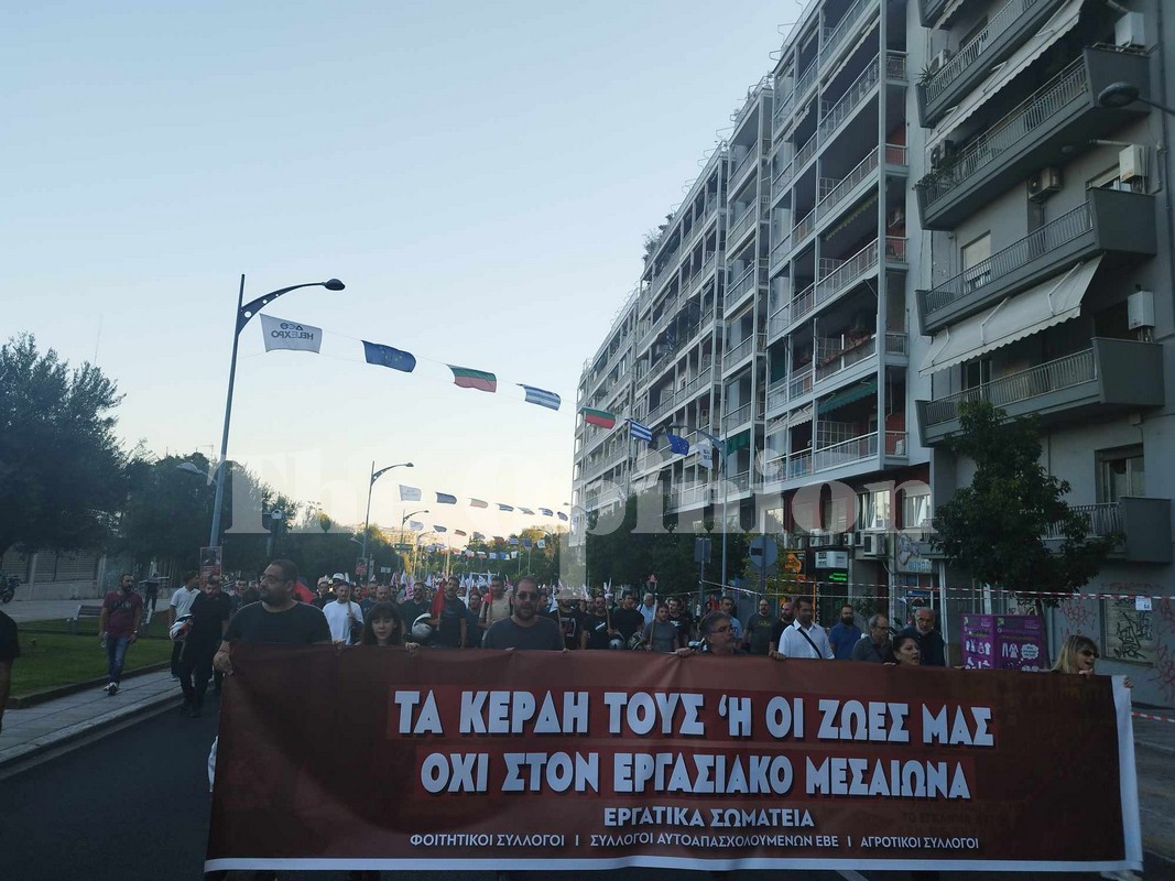 Το «παρών» δίνουν εργατικά σωματεία, συγγενείς θυμάτων της τραγωδίας των Τεμπών, φοιτητές από τη Θεσσαλία
