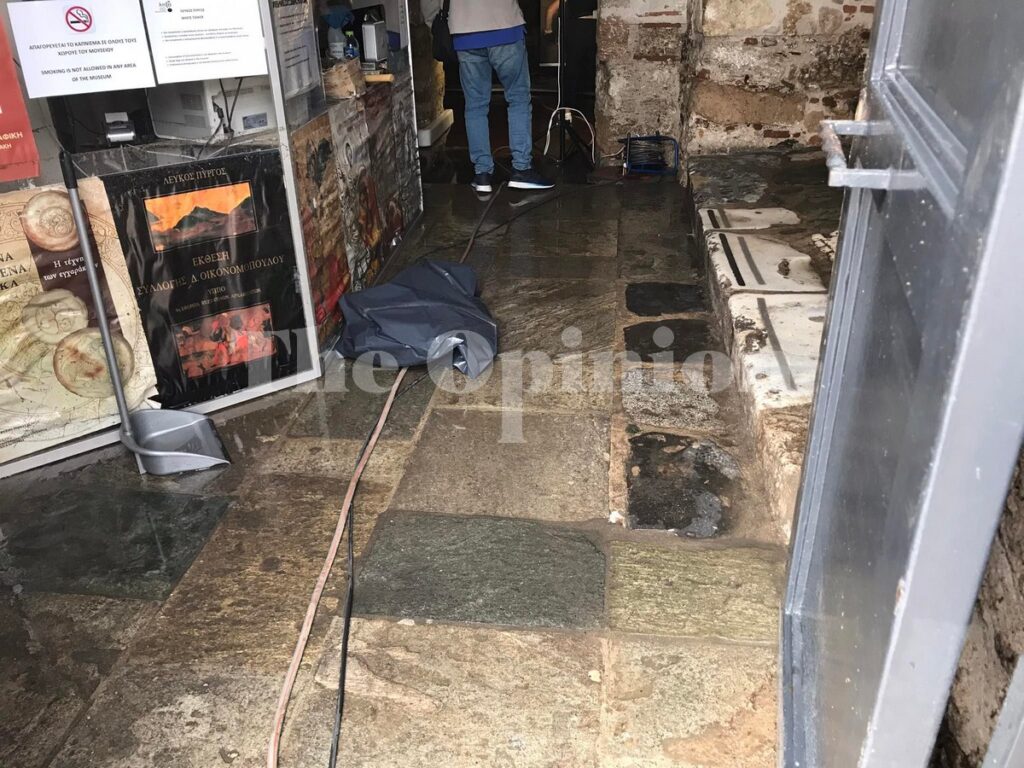 Το ισόγειο του μνημείου πλημμύρισε εξαιτίας της μεγάλης ποσότητας νερού ενώ χρειάστηκε η συμβολή της πυροσβεστικής υπηρεσίας για την απάντληση υδάτων που έφτασαν το 1,5 μέτρο.