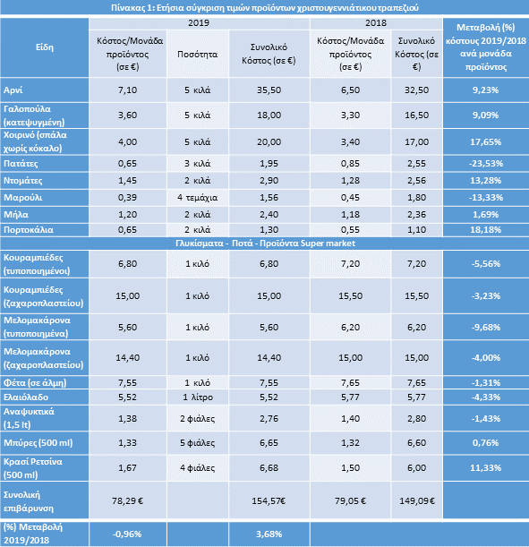 Δείτε ενδεικτικά τις τιμές που ίσχυαν το 2019, σύμφωνα με το Ινστιτούτο Εμπορίου και Υπηρεσιών (ΙΝ.ΕΜ.Υ.) της ΕΣΕΕ: