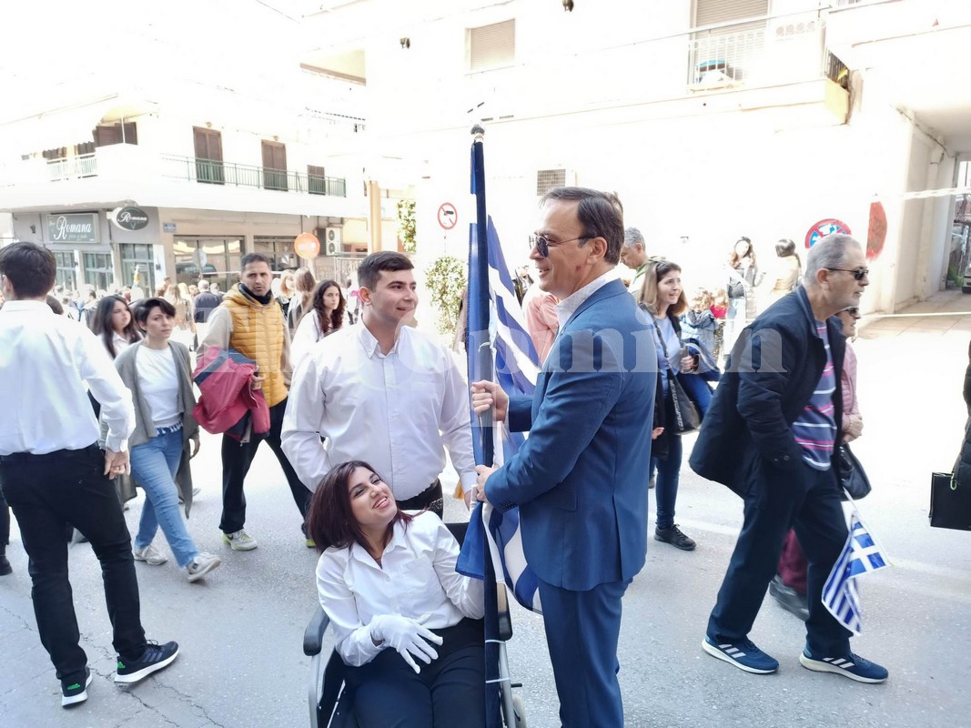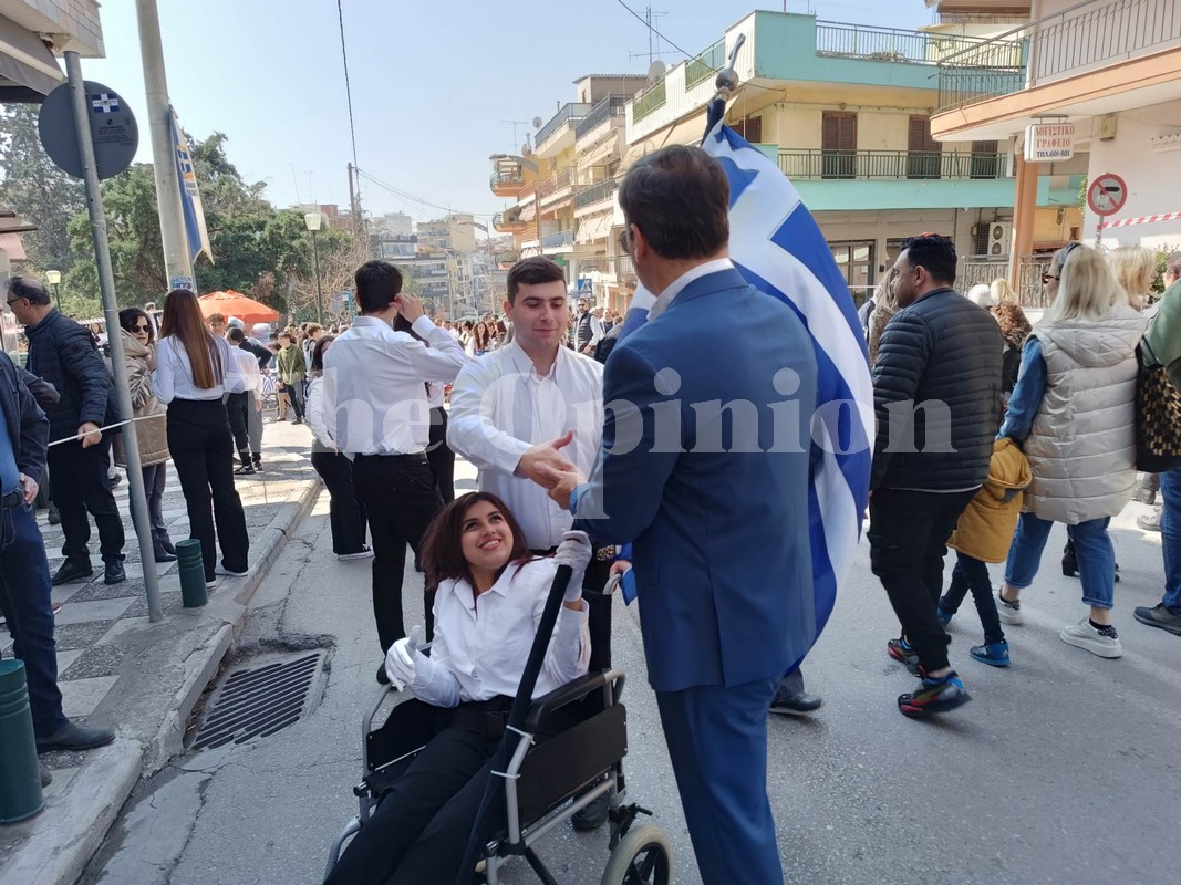 Και με το χαμόγελο και τη ζωντάνια της έδωσε νομίζω το καλύτερο παράδειγμα για το ότι με τη δύναμη της θέλησης μπορούμε να πετύχουμε και τους πιο υψηλούς στόχους, ενώ δεν έκρυψε και τη συγκίνησή της. «Είμαι πάρα πολύ χαρούμενη, πάρα πολύ περήφανη που εκπροσωπώ το σχολείο μου ως σημαιοφόρος. Χαίρομαι που αυτή την υπέροχη μέρα εμείς τελούμε αυτό το υπέροχο έργο, ευχαριστώ πάρα πολύ τους συμμαθητές μου, τον φίλο μου που με συνοδεύει,τους καθηγητές μου, τους γονείς μου. Είμαι περήφανη που οι πρόγονοί μας έδωσαν τη ζωή τους και το αίμα τους για να είμαστε εμείς εδώ και να γιορτάζουμε και χαίρομαι που τους τιμούμε με αυτό τον τρόπο. Και είμαι πολύ συγκινημένη και εύχομαι σε όλα τα παιδιά να πραγματοποιήσουν τα όνειρά τους» δήλωσε στο TheOpinion η Μαρία.