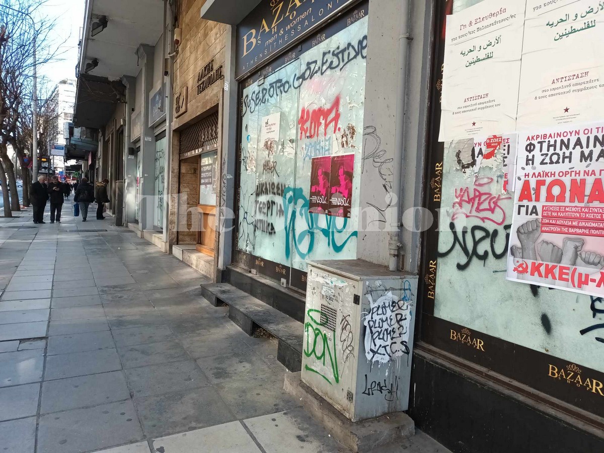 Στην οδό Βενιζέλου τα τελευταία χρόνια άνοιξαν δειλά – δειλά κάποια καταστήματα, ωστόσο παραμένουν τα δεκάδες λουκέτα. Όπως βλέπετε και στις φωτογραφίες του TheOpinion, υπάρχουν ακόμα καταστήματα με κατεβασμένα στόρια, σε άλλα υπάρχουν ενοικιαστήρια και στις περισσότερες βιτρίνες αντί για ρούχα, παπούτσια βλέπουμε (εδώ και χρόνια) γκράφιτι και μουτζούρες.