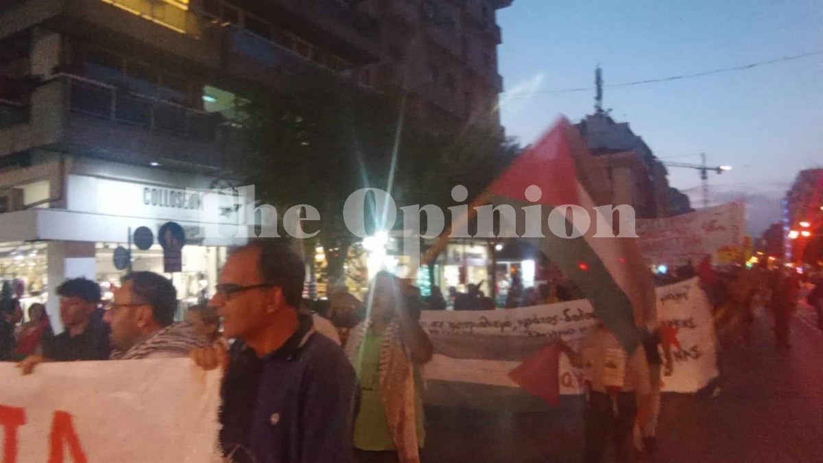 Πορεία συμπαράστασης στην Παλαιστίνη και στο λαό της βρίσκεται σε εξέλιξη, το απόγευμα της Τρίτης, σε κεντρικούς δρόμους της Θεσσαλονίκης, με τους συμμετέχοντες να κρατούν πανό και να φωνάζουν συνθήματα.