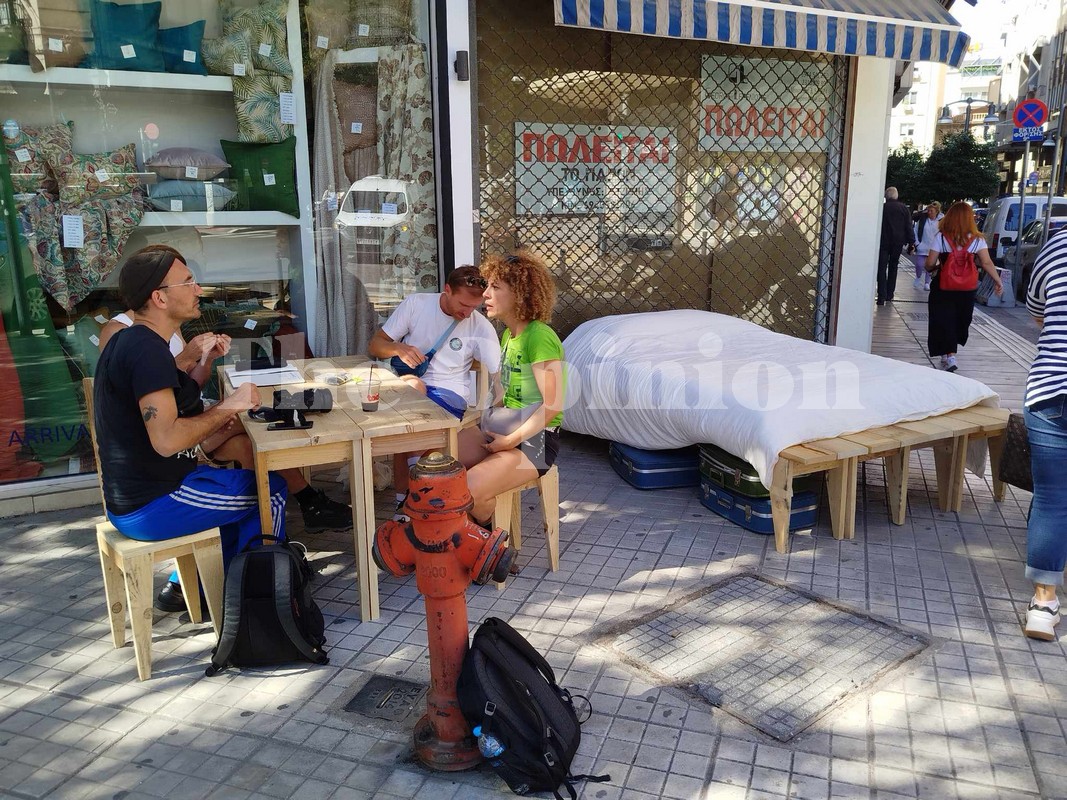 Αν δείτε κάποιον να ξαπλώνει σε ένα κρεβάτι, πάνω στο πεζοδρόμιο ή να πίνει τον καφέ του σε τραπεζάκι επί της Ερμού ή της Αριστοτέλους, μη σοκαριστείτε. Πρόκειται για καλλιτέχνες που ξεκίνησαν μια δράση με το όνομα Οδύσσεια.