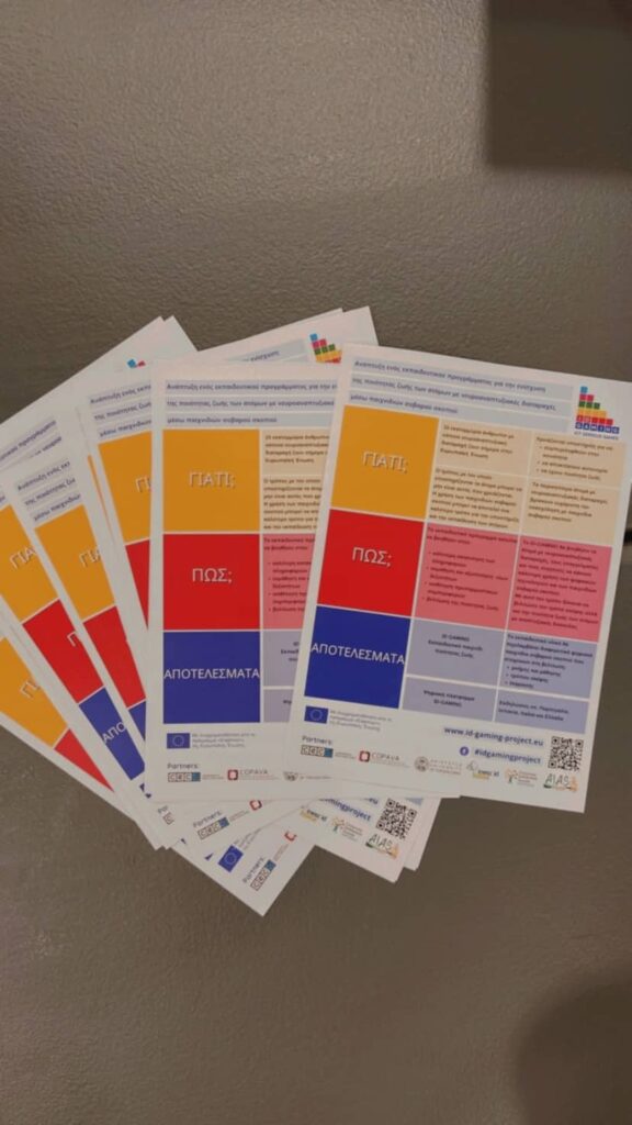 Να σημειωθεί ότι σε όλοι την Ευρώπη τα άτομα με νευροαναπτυξιακές διαταραχές είναι περίπου 15.000.000 και σε αυτό το πλαίσιο έχει αναπτυχθεί ένα εκπαιδευτικό επιτραπέζιο παιχνίδι για την ενίσχυση της ποιότητας ζωής και των γνωστικών λειτουργιών, εκπαιδευτικό υλικό σχετικά με τις διαστάσεις της ποιότητας ζωής, την επίδραση των γνωστικών λειτουργιών στην ποιότητα ζωής, τα παιχνίδια σοβαρού σκοπού και τον ρόλο των υποστηρικτικών μέσων.