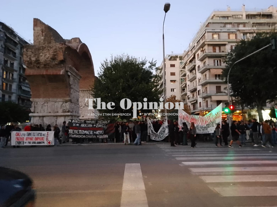 Οι διαμαρτυρόμενοι φώναξαν συνθήματα κατά της αστυνομικής παρουσίας μέσα στο ΑΠΘ, πέρασαν από το ΥΜΑΘ και ολοκλήρωσαν την πορεία τους στην πρυτανεία του πανεπιστημιακού ιδρύματος.
