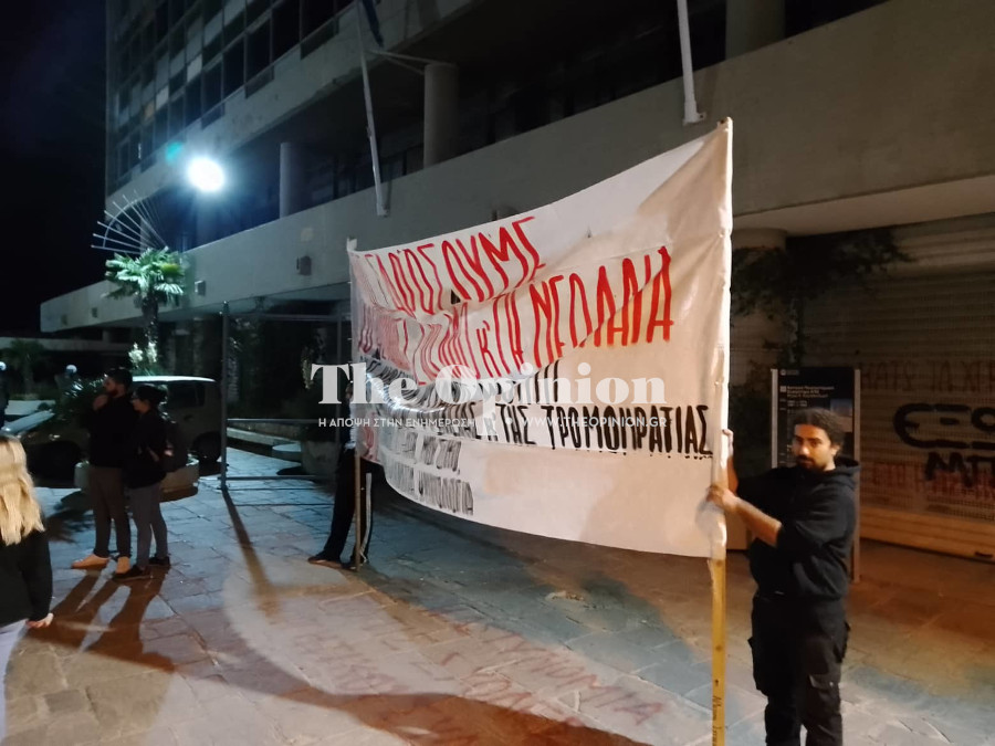 “Ο κρατικός μηχανισμός μέσω των δυνάμεων καταστολής μετατρέπεται σε κοινωνικό παίχτη με σκοπό την τρομοκράτηση, την πειθάρχηση και την απομάκρυνση του κόσμου απ’ τις κοινωνικές διεκδικήσεις. Μέσα σε μια συγκυρία φτωχοποίησης και ακρίβειας το κράτος, εξυπηρετώντας ταυτόχρονα και την προεκλογική του ακροδεξιά κατεύθυνση, αναβαθμίζει τον ρόλο του και εξοπλίζεται προληπτικά. Για να καταπνίξει κάθε αντίδραση εν τη γενέσει” αναφέρουν οι διαμαρτυρόμενοι.