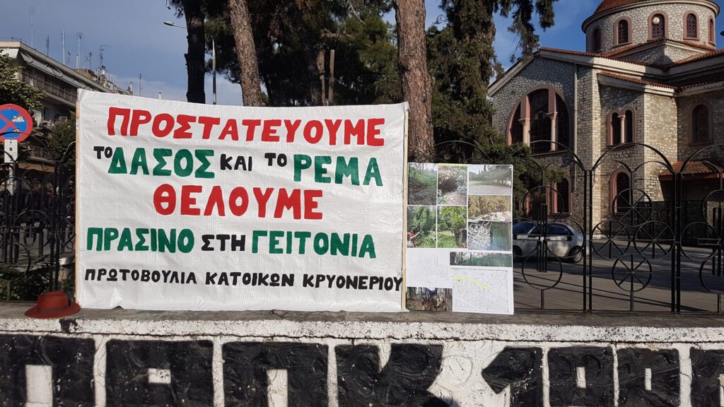 Σχεδόν ένα μήνα μετά την όμοφωνη έγκριση ψηφίσματος του Δημοτικού Συμβουλίου Θεσσαλονίκης με το οποίο ζητείται να ανασταλεί κάθε οικοδομική δραστηριότητα και αδειοδότηση στο ρέμα Κρυονερίου μέχρι να γίνει χαρτογράφηση του ρέματος στην περιοχή, το θέμα επανέρχεται στη συνεδρίαση του Δημοτικού Συμβουλίου, σήμερα Δευτέρα, με πρόταση της “Λαϊκής Συσπείρωσης” και με την παρουσία – για άλλη μια φορά – κατοίκων της περιοχής.