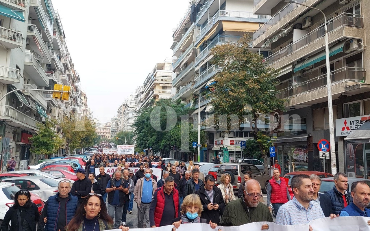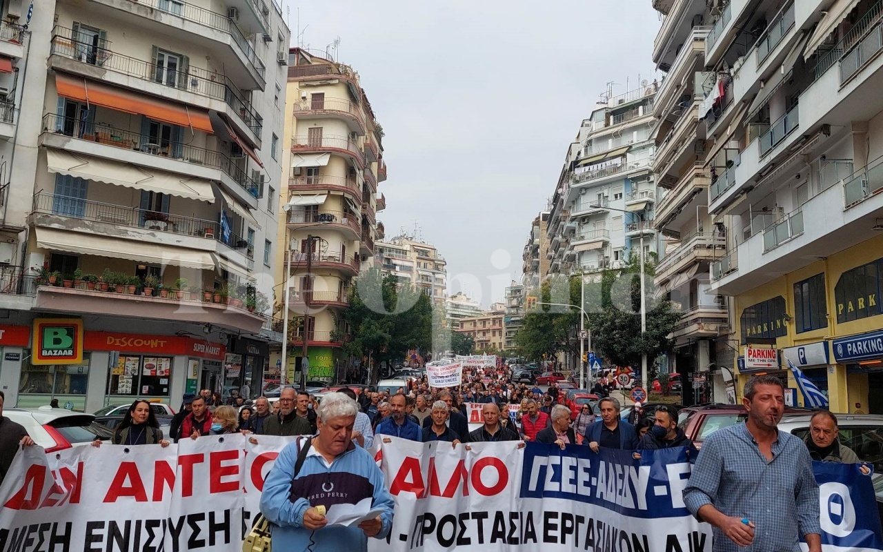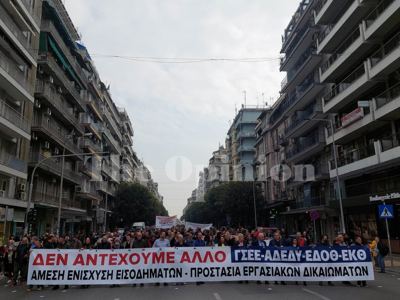 Χιλιάδες εργαζόμενοι βρίσκονται επί της Αγίου Δημητρίου, φωνάζοντας συνθήματα για την ακρίβεια και τις συνθήκες εργασίας. Η πορεία κατευθύνεται προς την Εγνατία, διασχίζοντας την Ιασωνίδου.