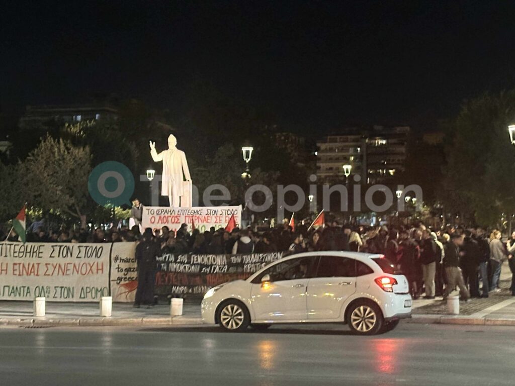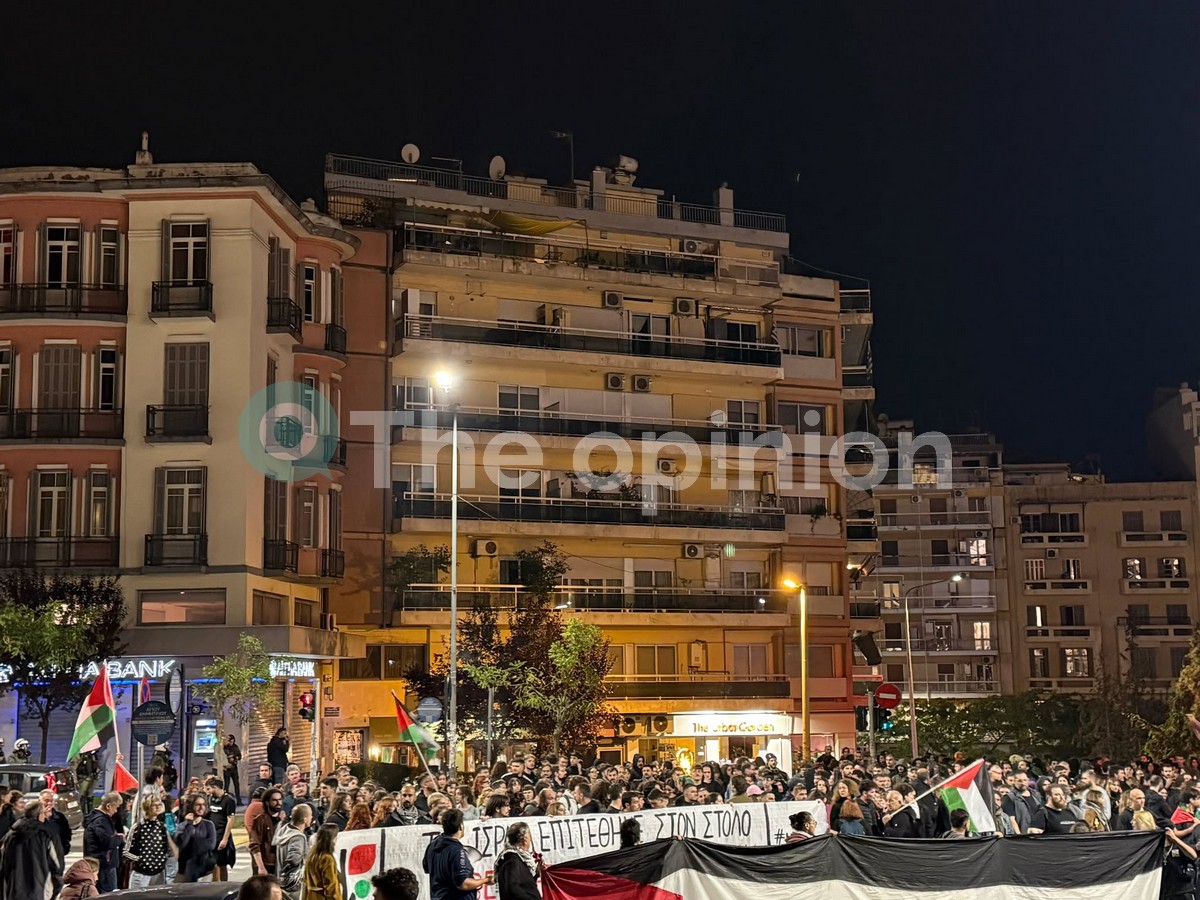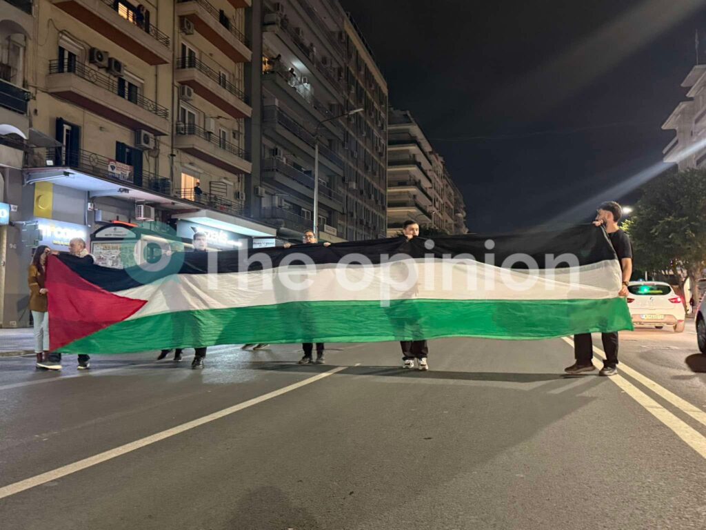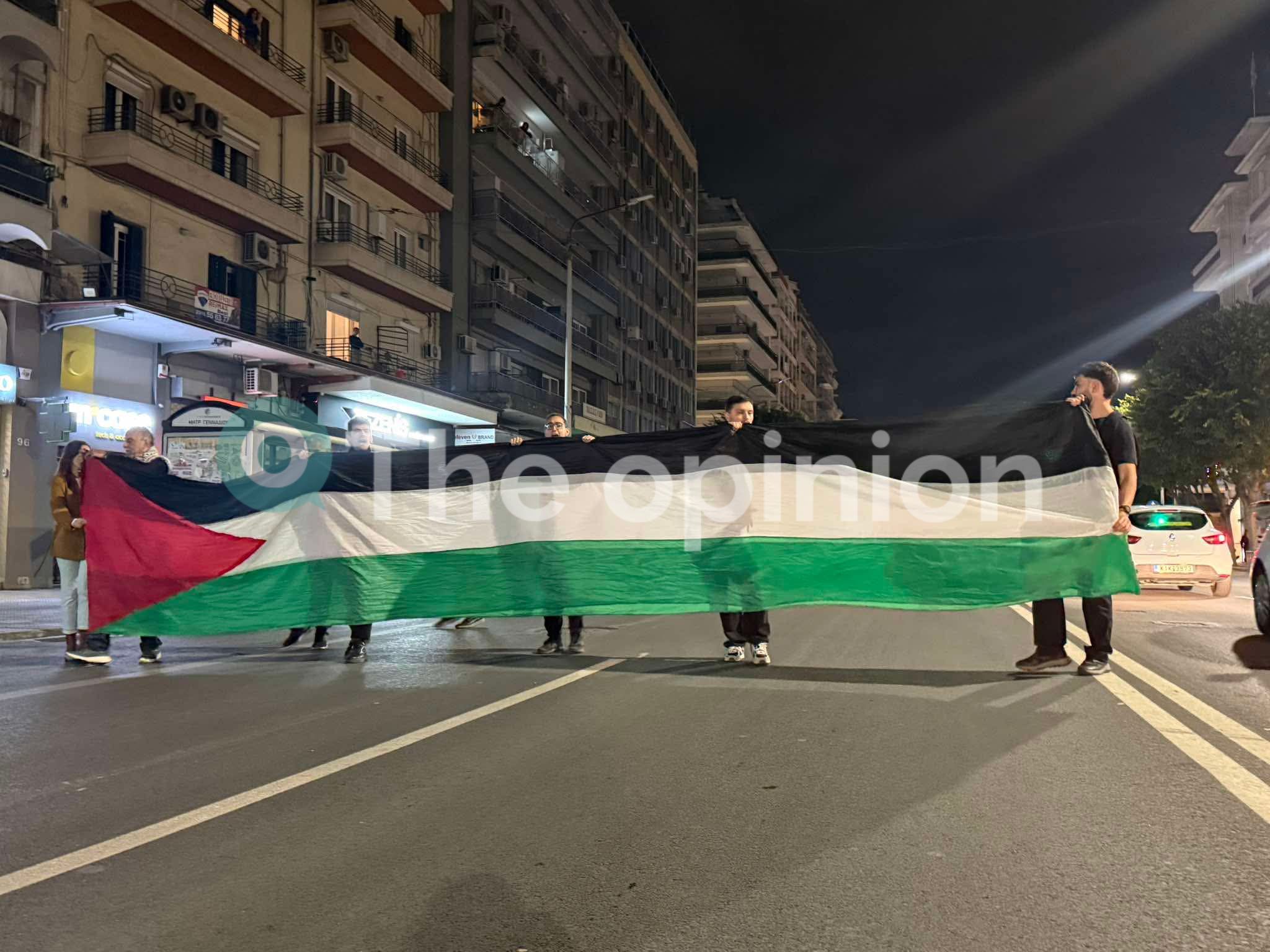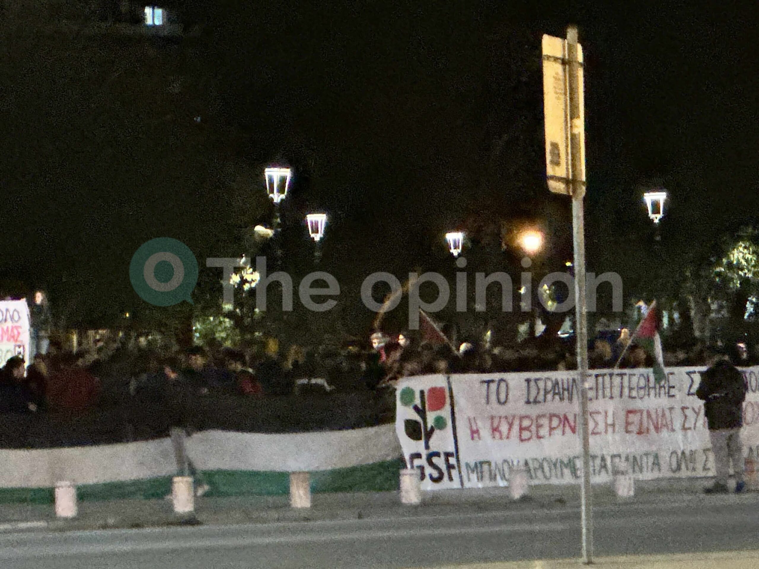 Συγκέντρωση που εξελίχθηκε σε πορεία τα μεσάνυχτα της Τετάρτης στο κέντρο της Θεσσαλονίκης σε ένδειξη αλληλεγγύης προς τον στολίσκο που κατευθύνεται στη Γάζα.