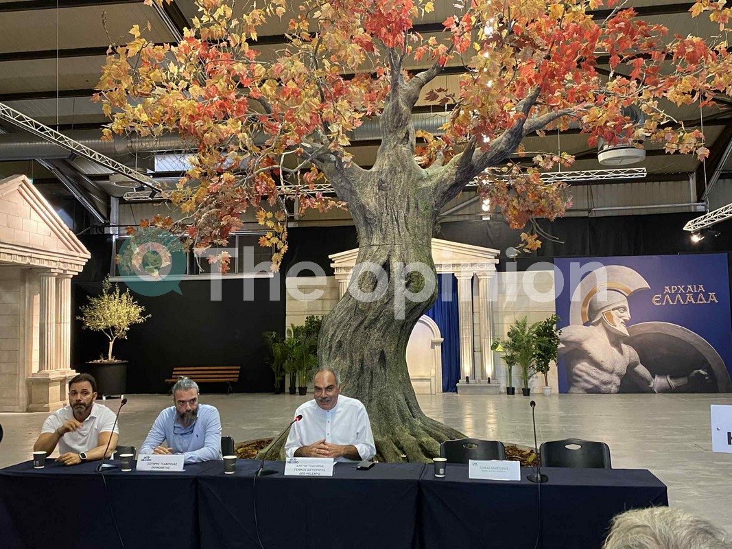 Ο Αλέξανδρος Τσαξιρλής, Γενικός Διευθυντής της ΔΕΘ- HELEXPO μίλησε πρώτος και είπε: «Παρουσιάζουμε ένα μοναδικό θεματικό πάρκο για την αρχαία Ελλάδα, που συνδυάζει τον πολιτισμό και την εκπαίδευση σε ένα εντυπωσιακό θέαμα το οποίο απευθύνεται σε όλες τις ηλικίες. Η συγκεκριμένη παραγωγή, η μεγαλύτερη που έχει γίνει ποτέ για την Αρχαία Ελλάδα, έρχεται στην Θεσσαλονίκη, μετά την τεράστια επιτυχία που σημείωσε στην Βουδαπέστη και στην Αθήνα . Το εγχείρημα αυτό φέρει την υπογραφή του σκηνοθέτη Σωτήρη Τσαφούλια και την ιστορική επιμέλεια του καταξιωμένου Θάνου Βέρμη. Η πορεία μας αυτή χαρακτηρίζεται από σταθμούς μεγάλης απήχησης. Ποιος μπορεί να ξεχάσει το «Εργοστάσιο Σοκολάτας» ή «Τους Μυστικούς Κόσμους του Ευγένιου Τριβιζά». Το θεματικό πάρκο «Αρχαία Ελλάδα» είναι το νέο κεφάλαιο σε αυτή την επιτυχημένη πορεία. Σας καλούμε όλους να το επισκεφτείτε και να ζήσετε από κοντά μια ανεπανάληπτή ιστορία εμπειρία».