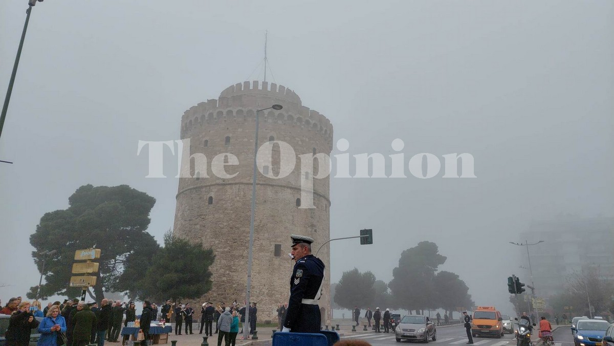 Με φόντο τον ομιχλωδη Λευκό Πύργο στήθηκε για ακόμα μια χρονιά το βαρέλι του Τροχονόμου, ανήμερα της τελευταίας ημέρας του 2022.
