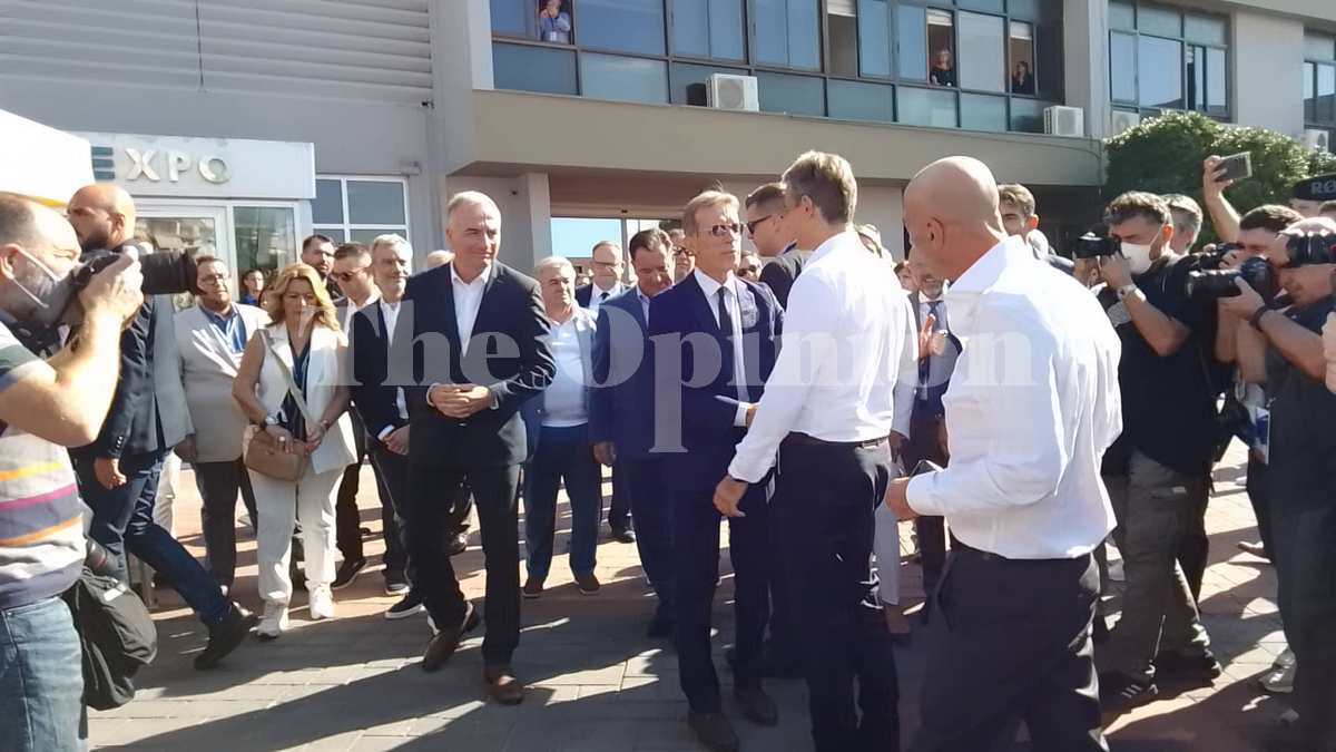 Τον υποδέχθηκαν ο πρόεδρος της ΔΕΘ Τάσος Τζήκας και ο διευθύνων σύμβουλος Κυριάκος Ποζρικιδης ενώ είχε χειραψία και με τον δήμαρχο Θεσσαλονίκης Κωνσταντίνο Ζέρβα και τον ΥΜΑΘ Σταύρο Καλαφάτη.
