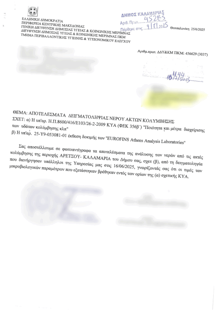 Σύμφωνα με το σχετικό έγγραφο που παρουσιάζει το TheOpinion, οι μετρήσεις που πραγματοποιήθηκαν επιβεβαιώνουν ότι όλοι οι εξεταζόμενοι μικροβιολογικοί δείκτες βρίσκονται εντός των προβλεπόμενων ορίων, διασφαλίζοντας την ποιότητα και την ασφάλεια των υδάτων για τους λουόμενους.