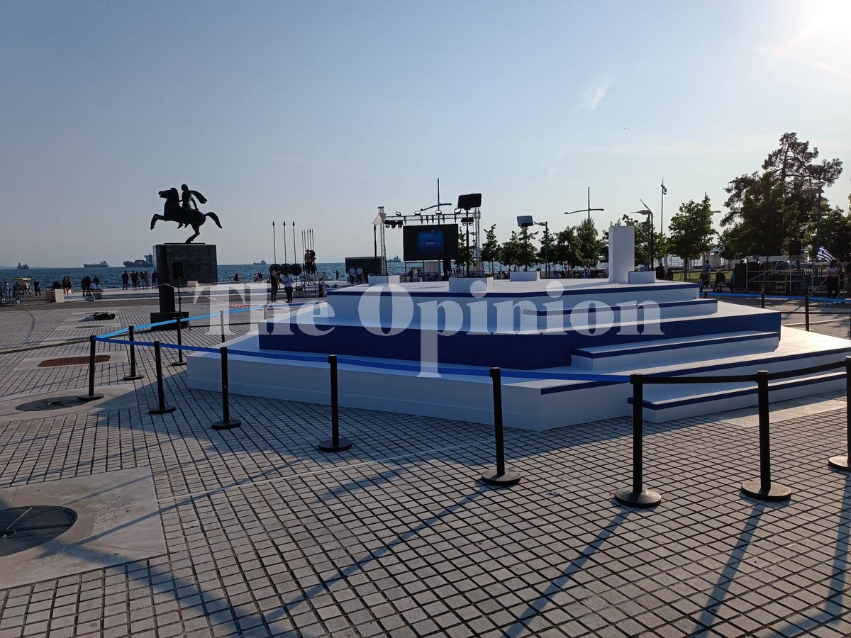 Όλα έτοιμα στη Νέα Παραλία Θεσσαλονίκης για την ομιλία του Κυριάκου Μητσοτάκη.