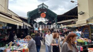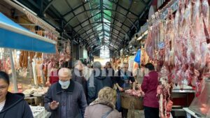 Στην αγορά Καπάνι σπεύδουν οι Θεσσαλονικείς για να προμηθευτούν τον απαραίτητο για το Πάσχα οβελία.