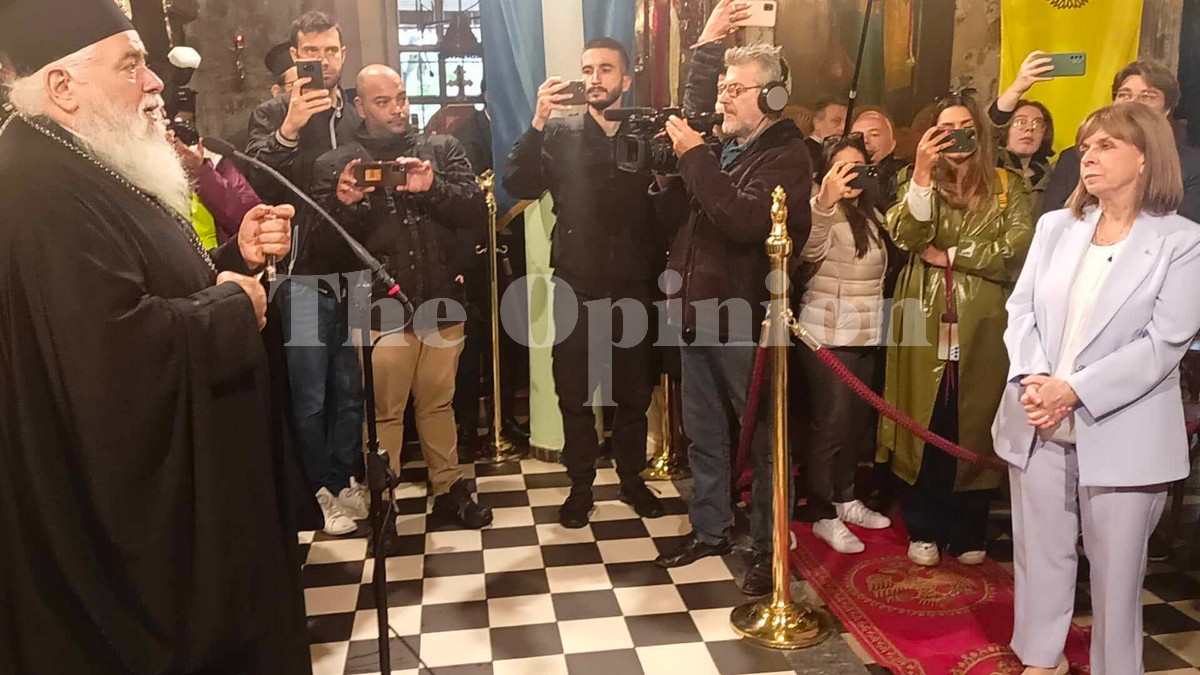 Στη συνέχεια, εισήλθαν εντός του Ναού, με τον Μητροπολίτη να εξιστορεί στην Πρόεδρο την ιστορία του και της περιοχής του Ευόσμου.