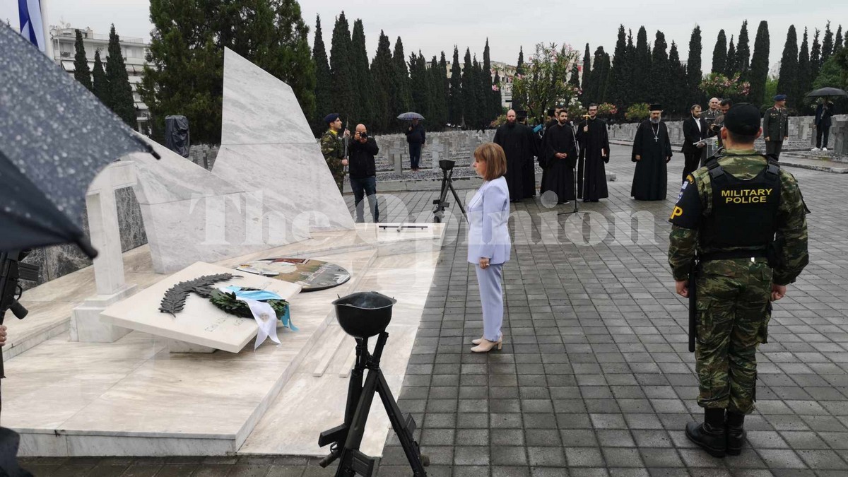 Μετά το πέρας της επιμνημόσυνης δέησης, η κ. Σακελλαροπούλου κατέθεσε στεφάνι στο μνημείο που έχει στηθεί στο σημείο.