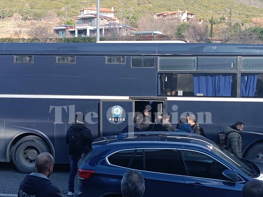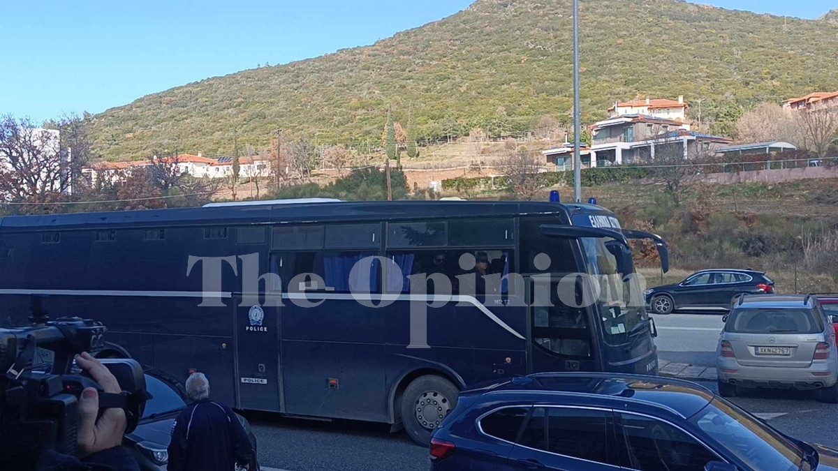 Λίγο πριν τις 12:00 έφτασαν στα δικαστήρια οι 21 συλληφθέντες με κουκούλες και υπό ισχυρή αστυνομική συνοδεία.
