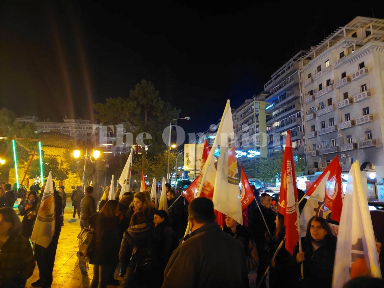 Οι διαμαρτυρόμενοι ξεκίνησαν πορεία από το άγαλμα του Βενιζέλου, κλείνοντας την οδό Εγνατία προς τα ανατολικά.