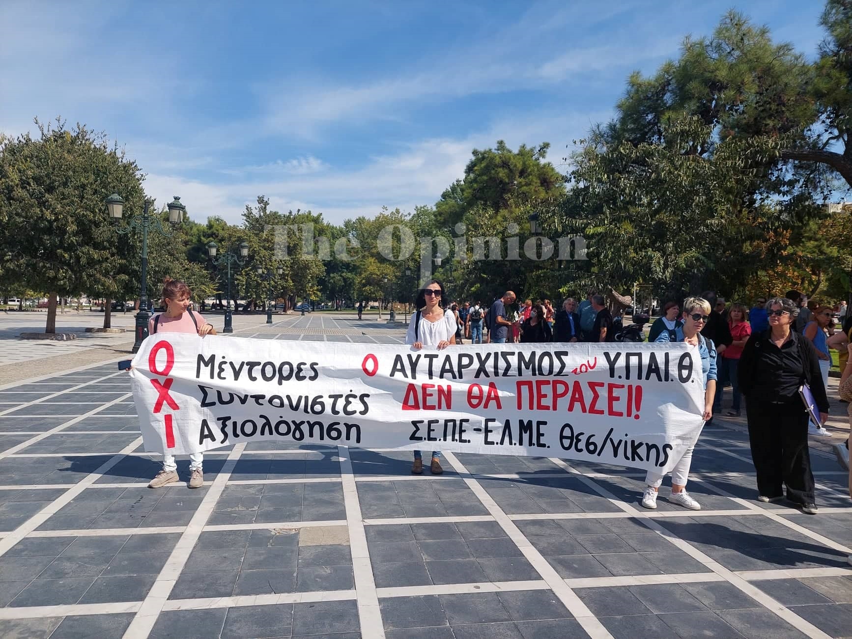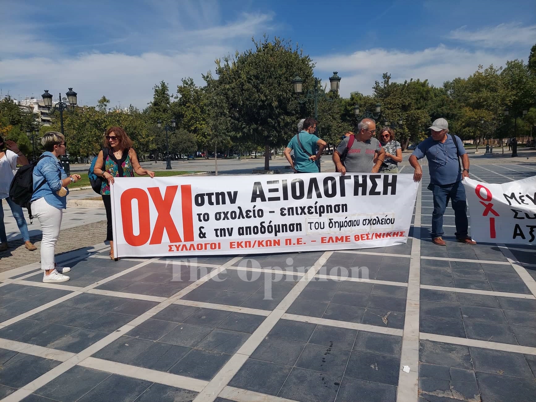 Συγκέντρωση διαμαρτυρίας πραγματοποίησαν το μεσημέρι της Δευτέρας εκπαιδευτικοί της πρωτοβάθμιας εκπαίδευσης στο άγαλμα του Ελευθερίου Βενιζέλου στο κέντρο της Θεσσαλονίκης.