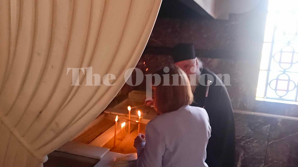 Στη συνέχεια η κ. Σακελλαροπούλου περιηγήθηκε στην Ιερά Μητρόπολη Σταυρουπόλεως Νεαπόλεως και θαύμασε το ψηφιδωτό που κοσμεί το Ναό και είναι αφιερωμένο στους πρόσφυγες που κατέφθασαν στην περιοχή.
