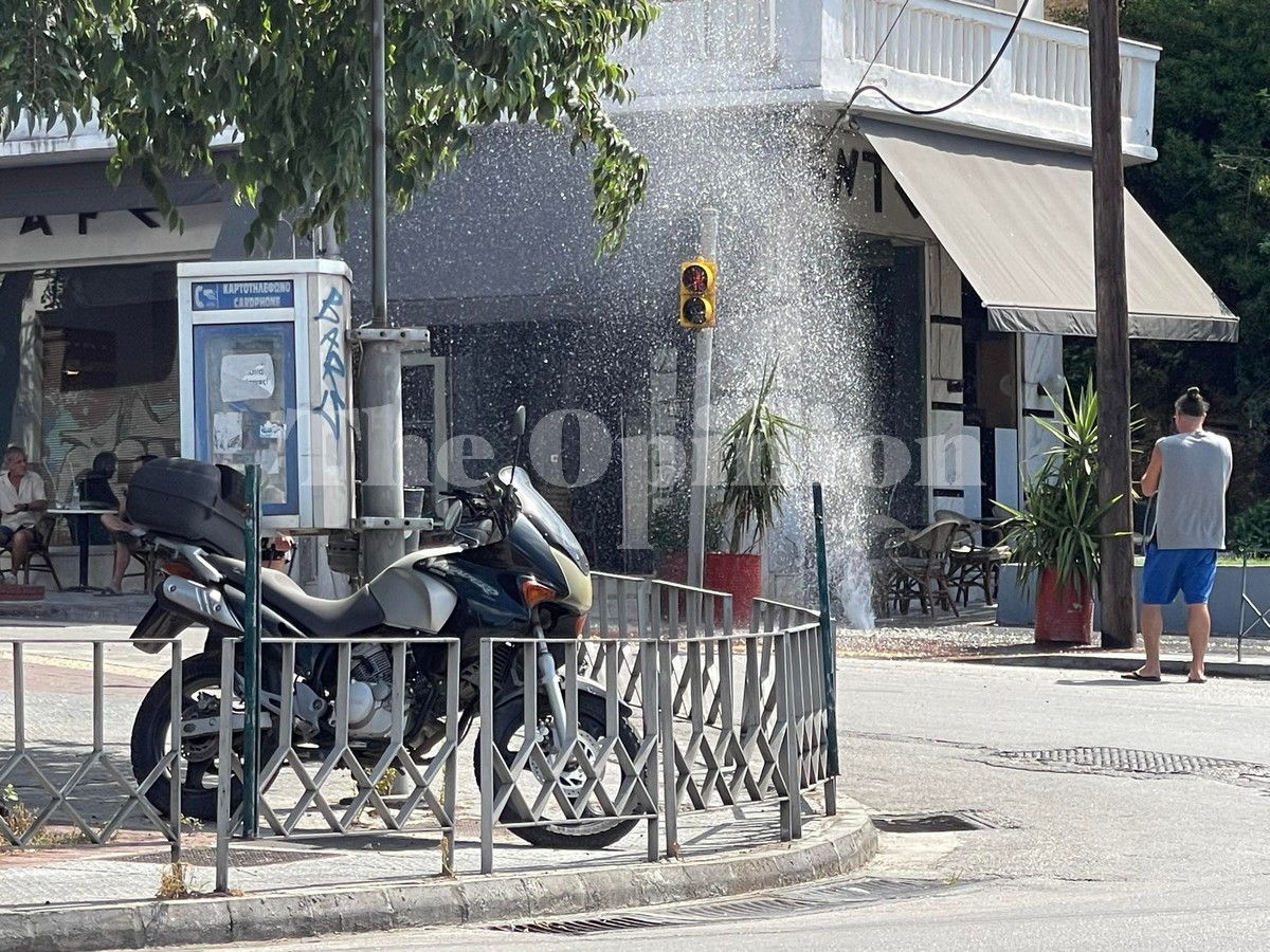 Το περιστατικό συνέβη λίγο μετά τις 11.30 το πρωί του Σαββάτου στη συμβολή των οδών Αγίου Δημητρίου με Αρκαδιουπόλεως όπου το νερό πετάχτηκε σαν συντριβάνι δημιουργώντας μια μικρή λίμνη.