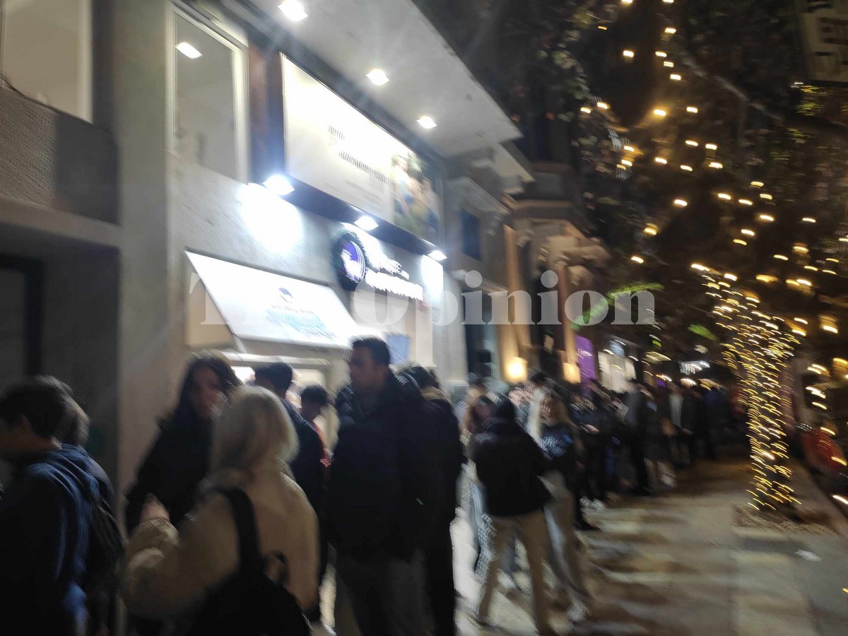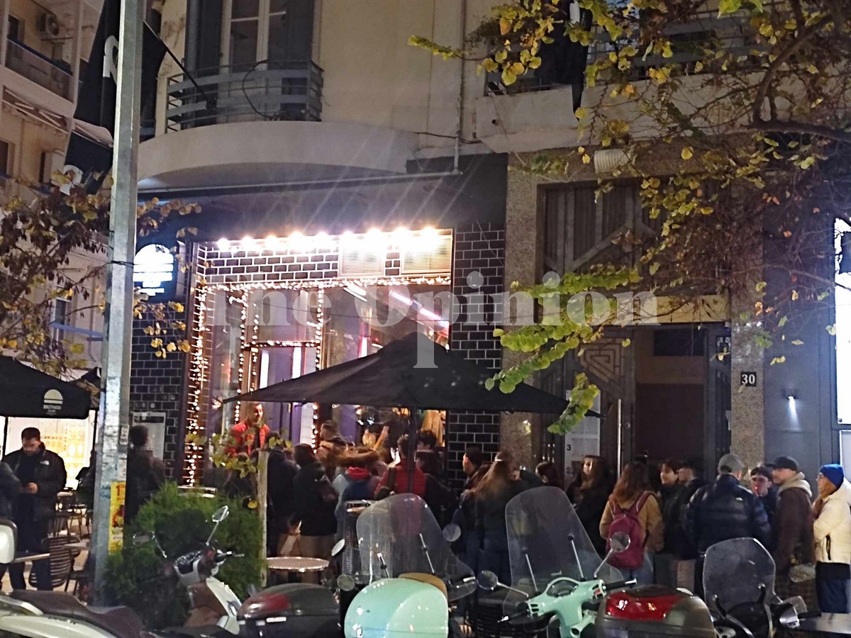 Μεγάλες ουρές σχηματίζονται από νωρίς το απόγευμα στο κέντρο της Θεσσαλονίκης έξω από γνωστό κατάστημα εστίασης.